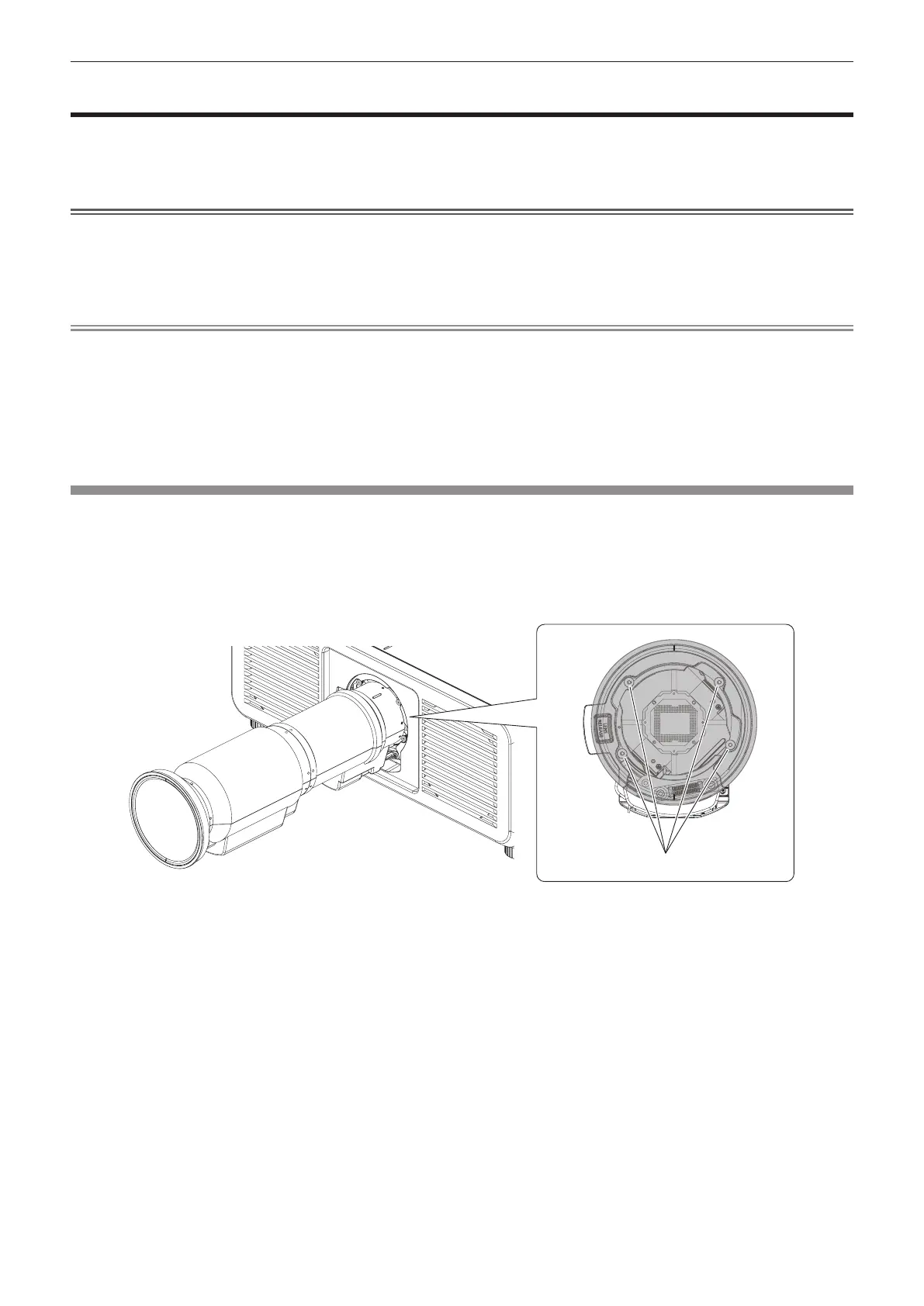 f For the adjustment procedure of the focus, zoom, and lens shift after attaching the projector lens, refer to “Adjusting the focus, zoom, and