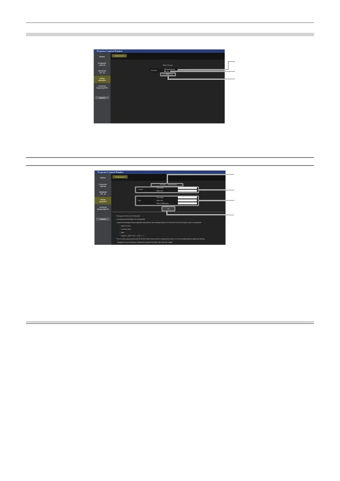 Control”) which uses the communication control via LAN, communication with the projector will become impossible if a user name or
