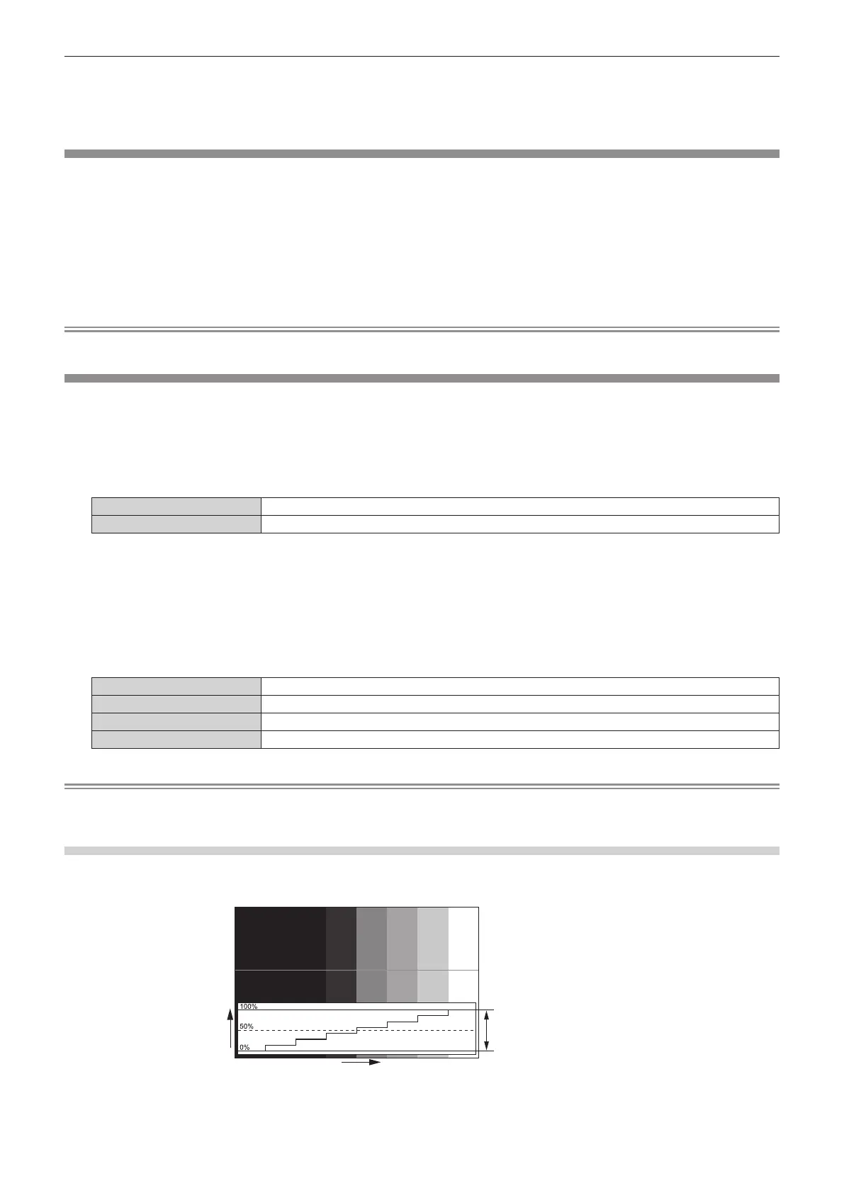 Project the luminance adjustment signal of a commercial test disk (0 % (0 IRE or 7.5 IRE) – 100 % (100 IRE)) and