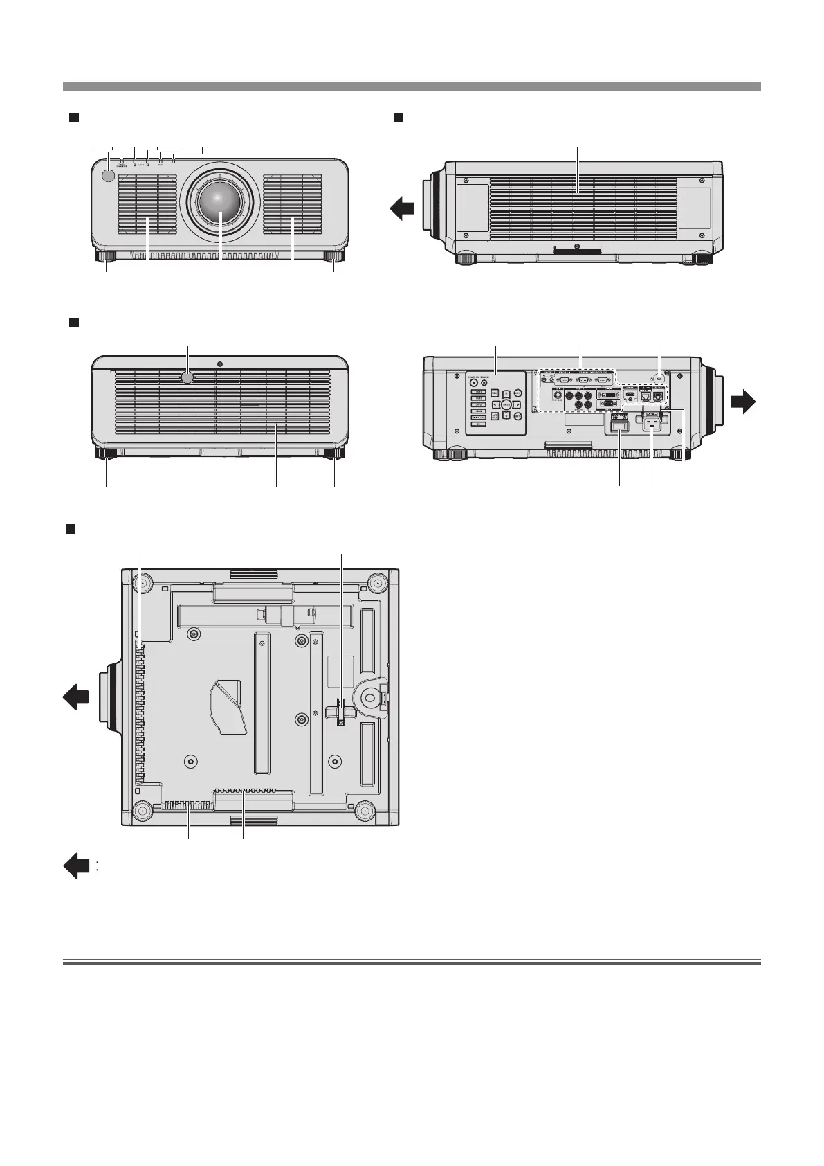 f Do not block the ventilation ports (intake and exhaust) of the projector.