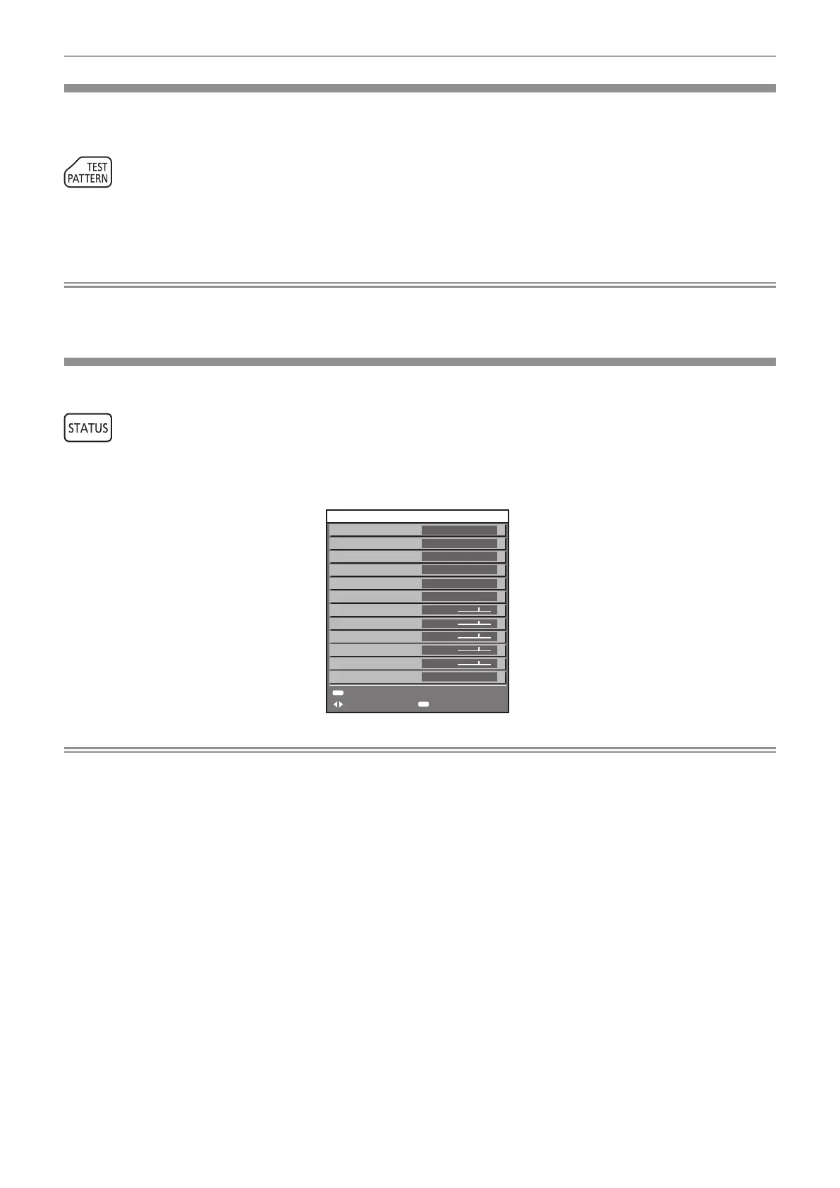 f Test patterns can also be displayed using the menu operation. Refer to “[TEST PATTERN] menu” (x page 173) for details.