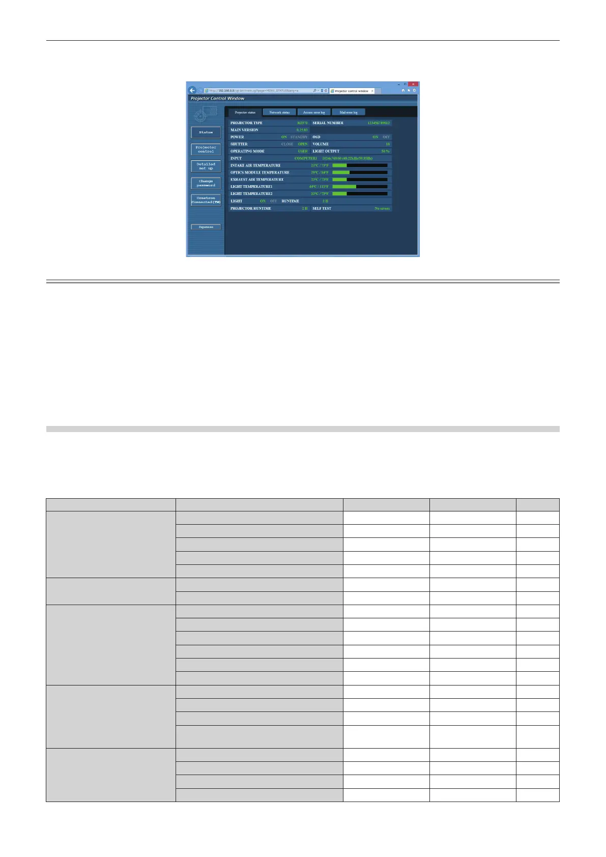 f The [Projector status] page is displayed.