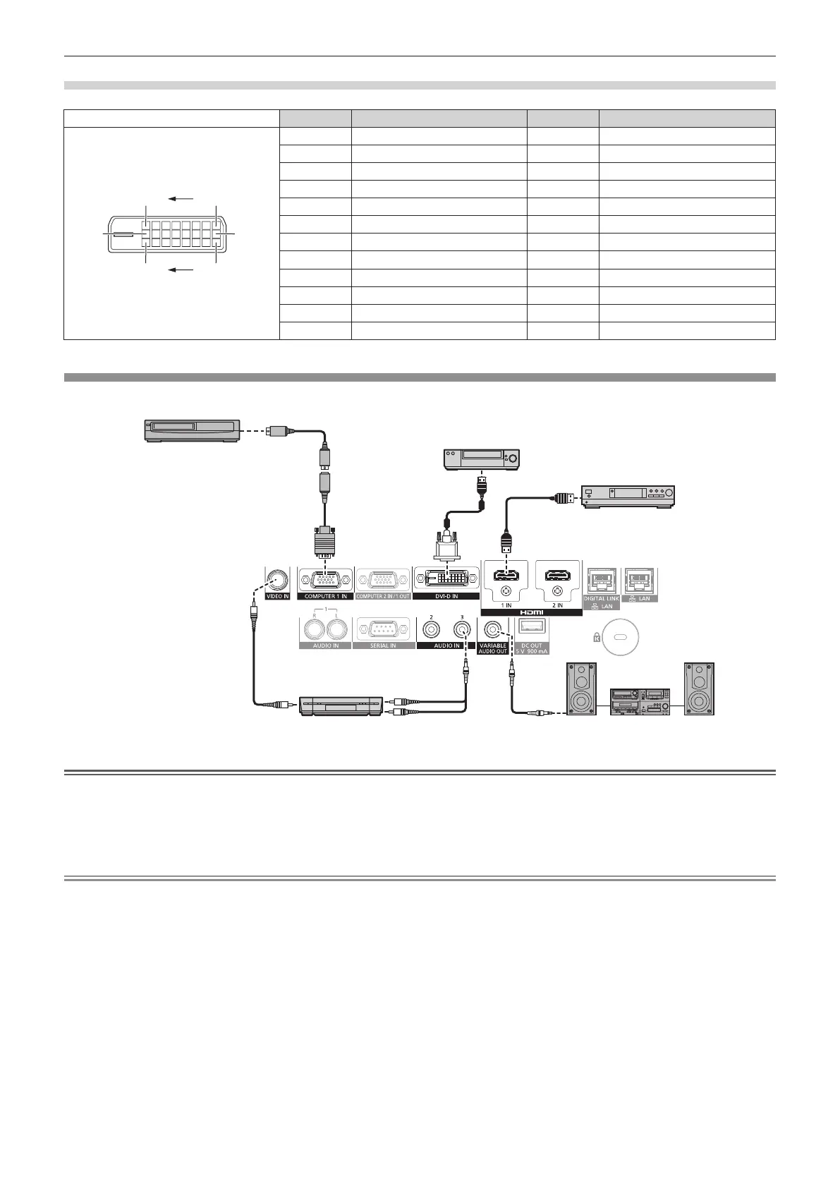 f The <HDMI 1 IN>/<HDMI 2 IN> terminals can be connected to an external device with the DVI-D terminal by using an HDMI/DVI conversion