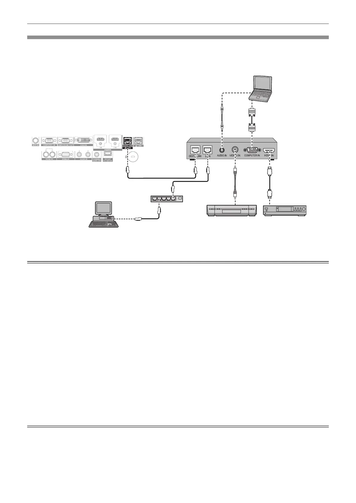 f When connecting to the projector using a twisted-pair-cable transmitter (receiver) of other manufacturers, do not place another twisted-pair-