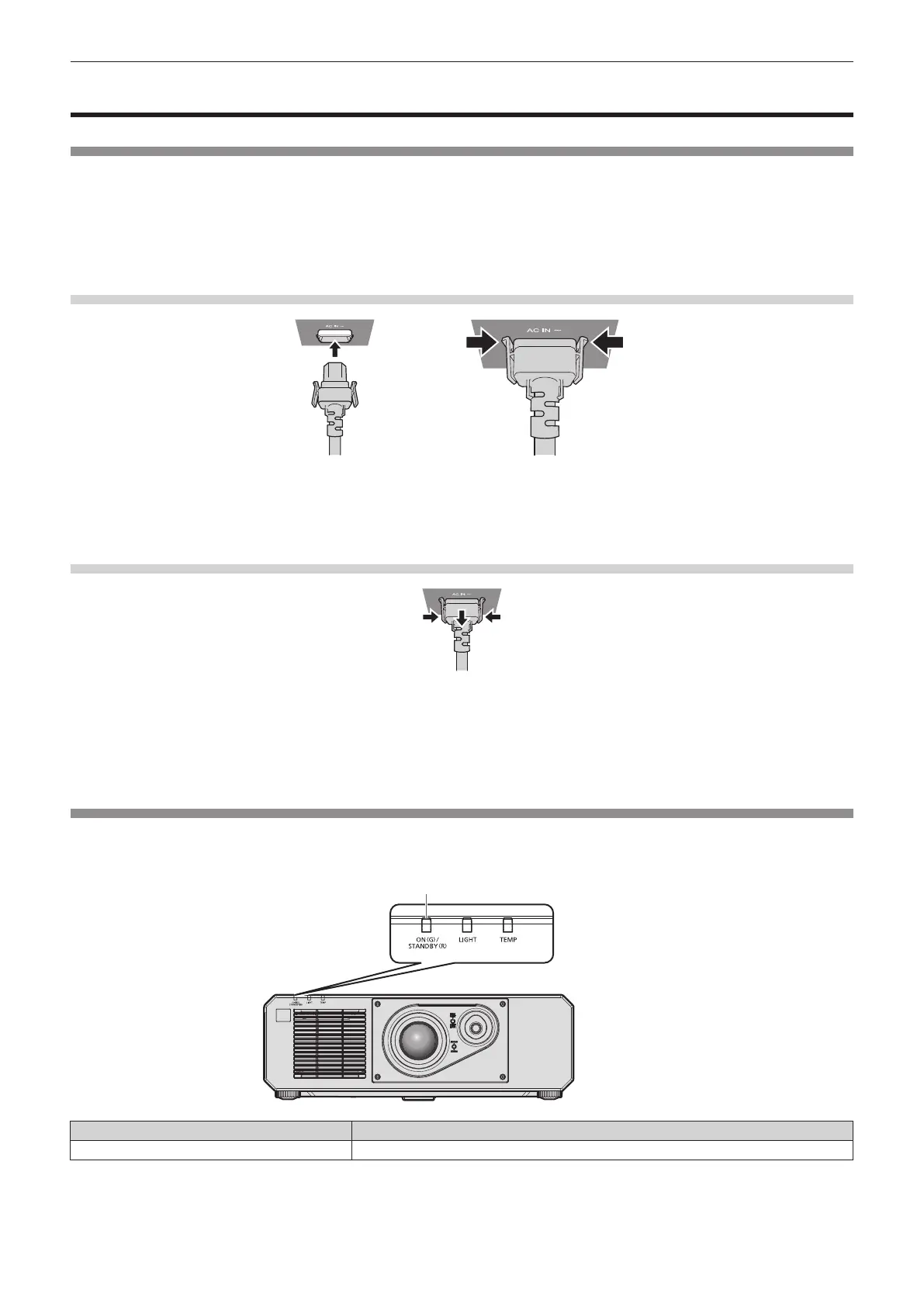 Make sure that the supplied power cord is securely xed to the projector body to prevent it from being