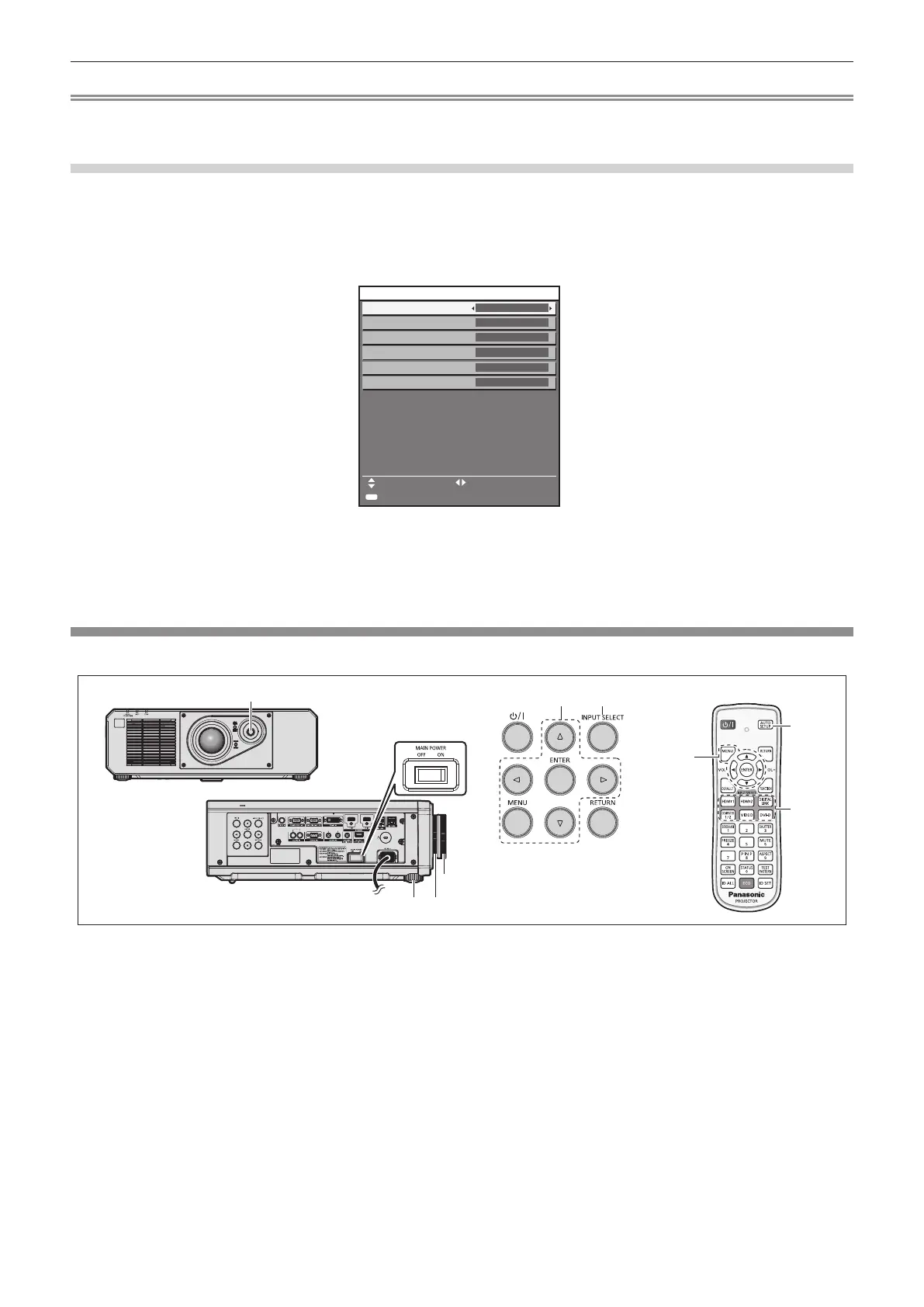 f For details of operation for input selection, refer to “Selecting the input signal” (x page 47).