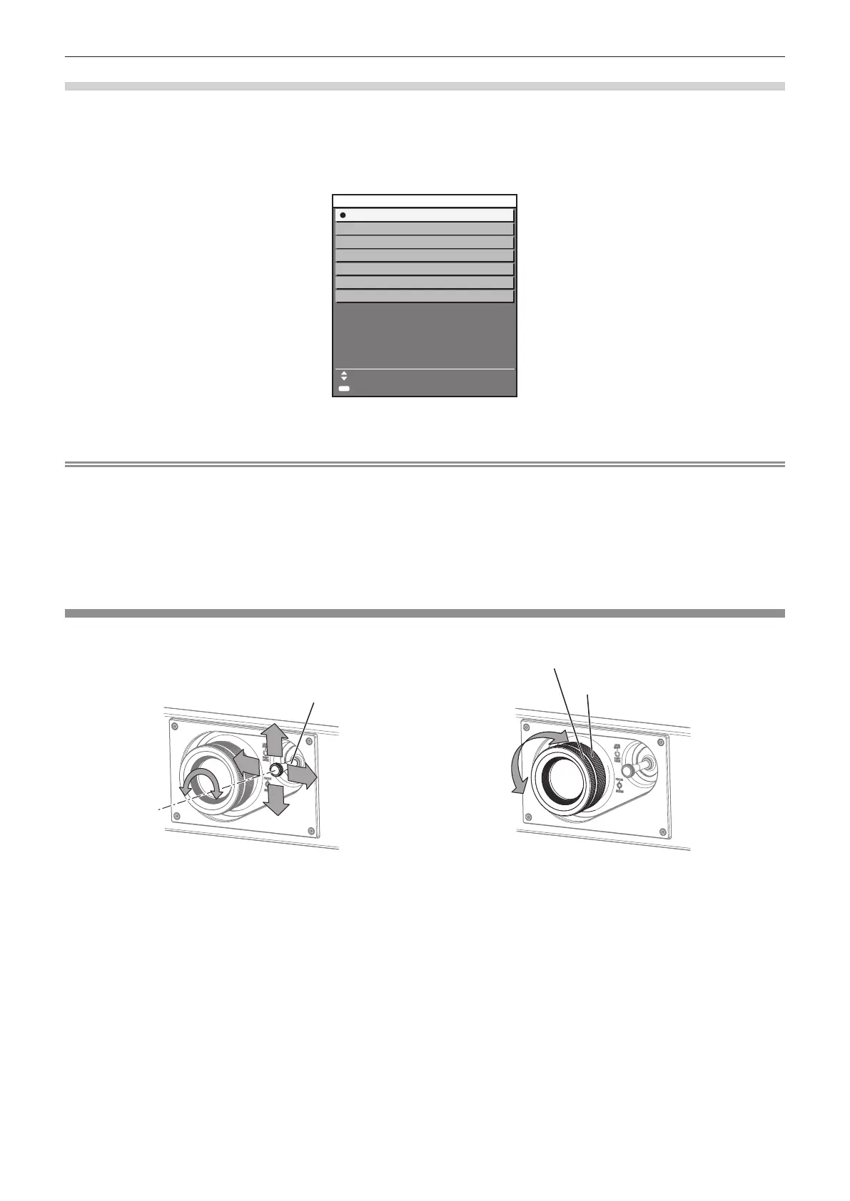 f Refer to “Adjustment range by the lens position shift (optical shift)” (x page 49) for details.