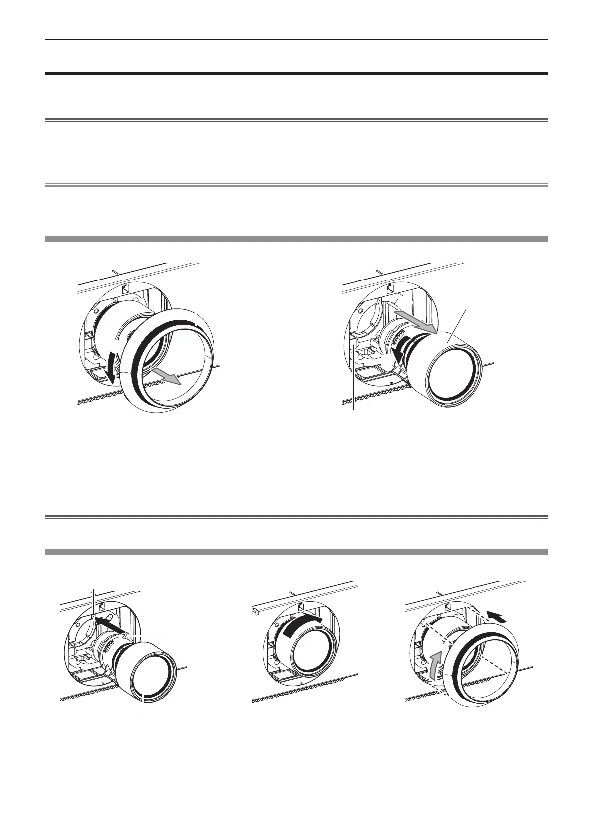 Removing and attaching methods of the projection lens are same for both standard zoom lenses and optional lenses.