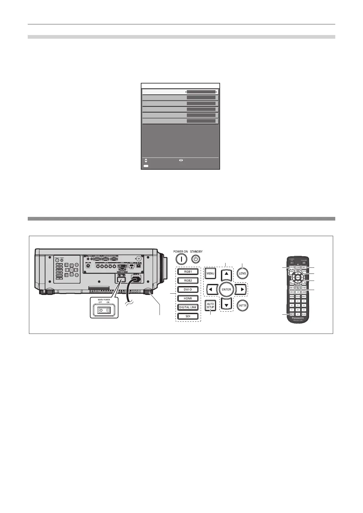 3) Press the input selection button (<RGB1> and <RGB2>, or <RGB1/2>, <DIGITAL LINK>, <DVI‑D>,