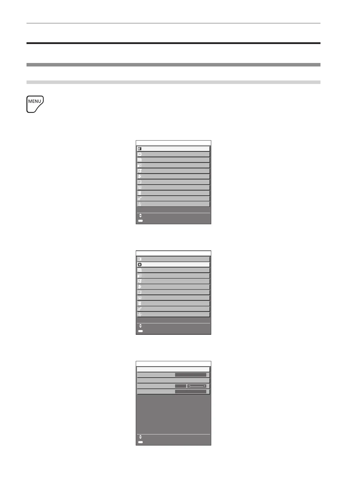 The on-screen menu (Menu) is used to perform various settings and adjustments of the projector.