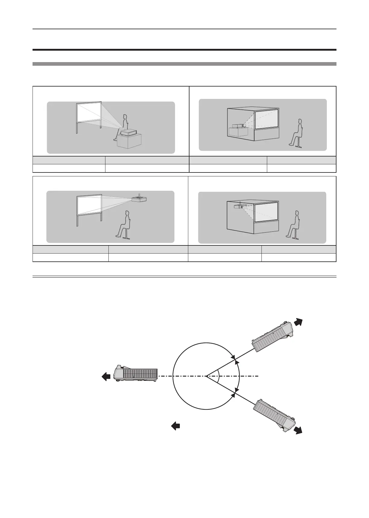 There are four ways to set up the projector. Set the [PROJECTOR SETUP] menu → [PROJECTION METHOD]