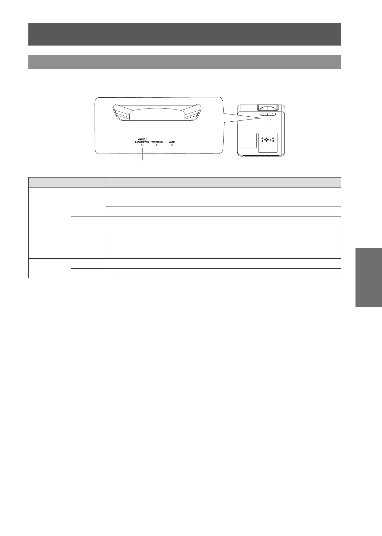 The <ON(G)/STANDBY(R)> indicator informs you the status of the power. Conrm the status of the <ON(G)/