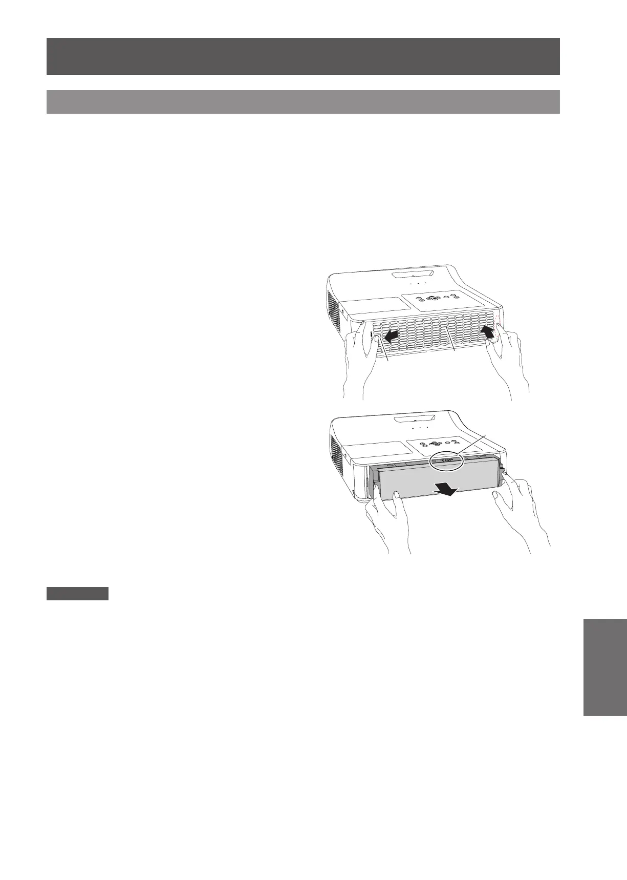 Do not operate the projector with the air lter unit removed. Dust may accumulate on the optical elements
