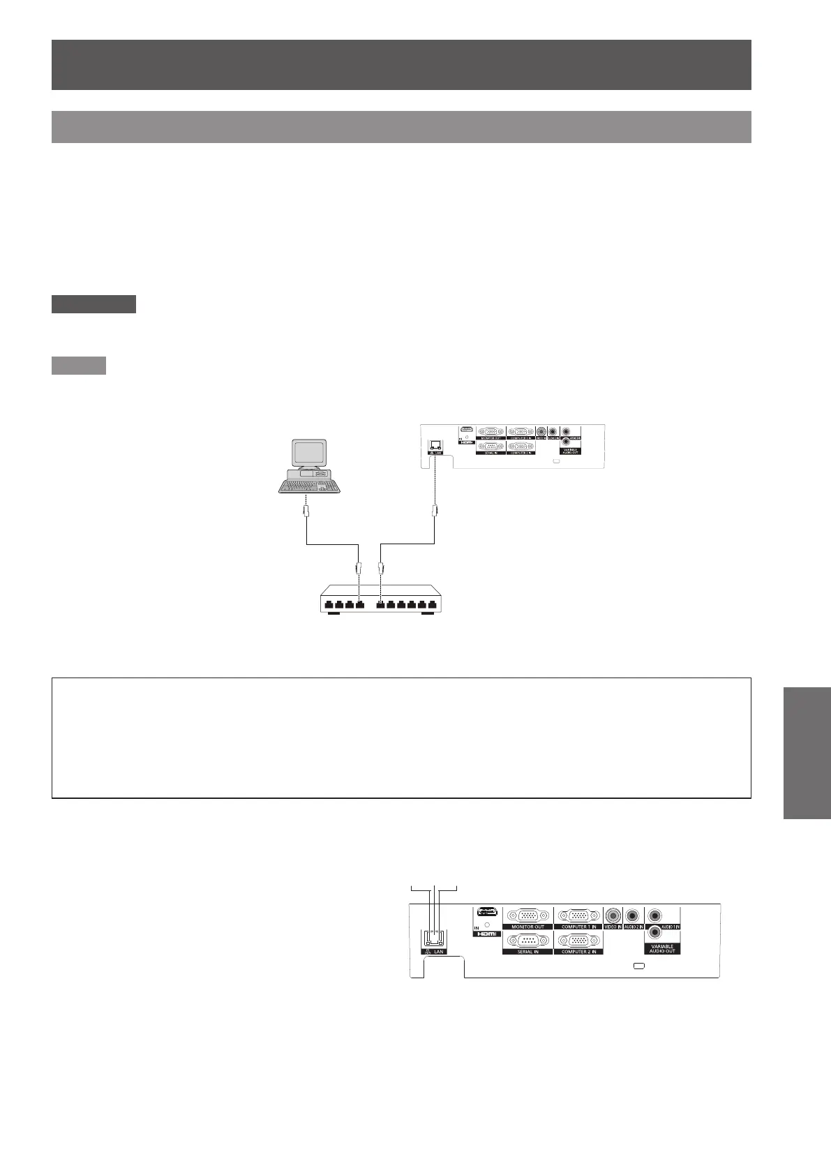 Set the [UART Mode] in the [Setting] menu to [LAN] before controlling the projector via <LAN> terminal.