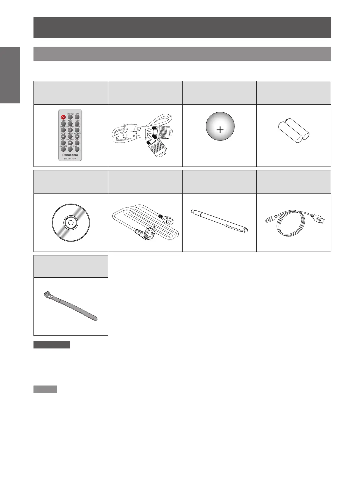 Make sure the following accessories are provided with your projector. Numbers in the brackets ( ) show the