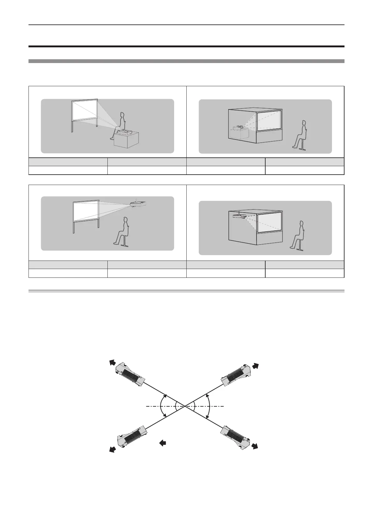 There are four ways to set up the projector. Set the [PROJECTOR SETUP] menu → [PROJECTION METHOD]