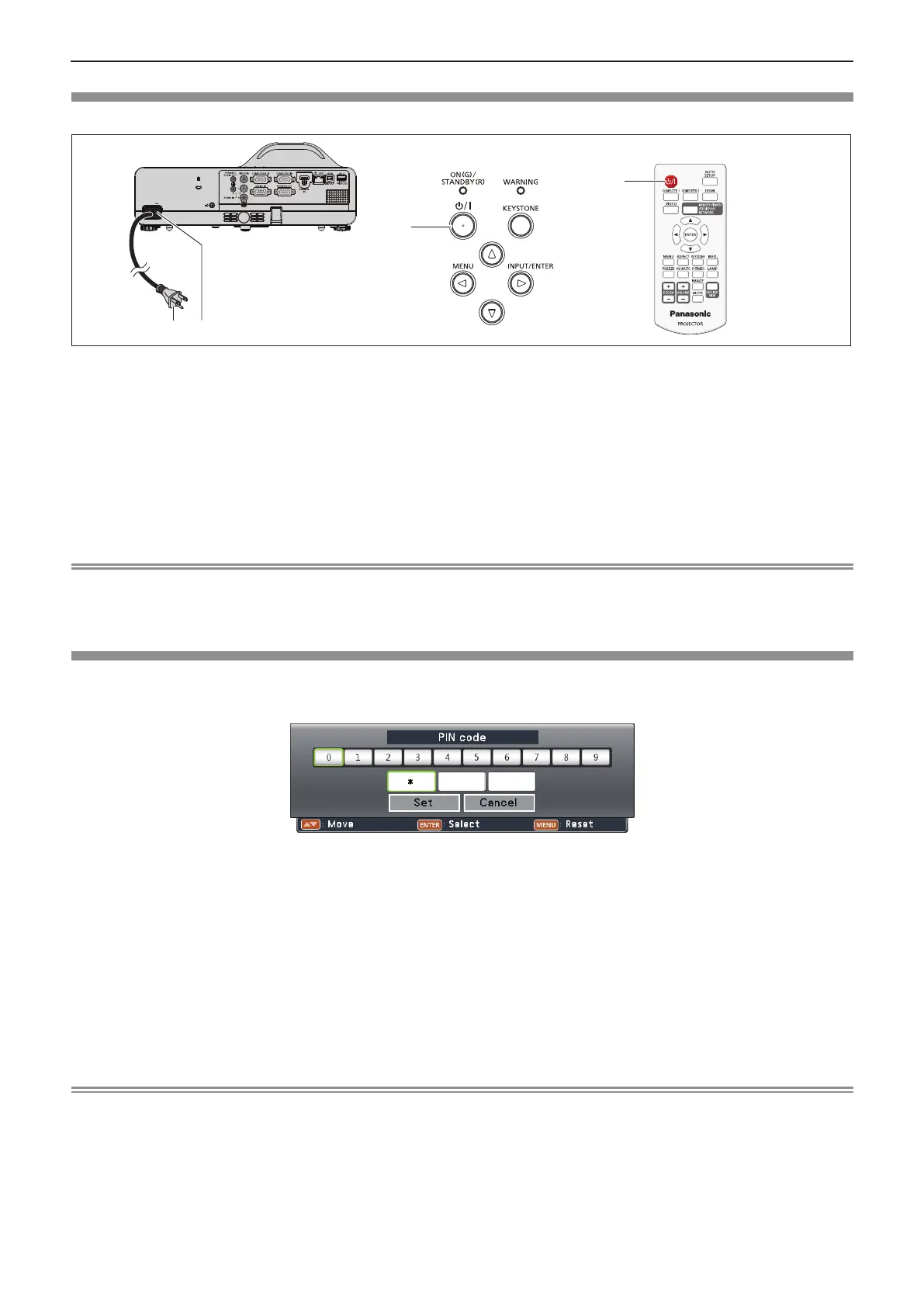 If the [PIN code] of the projector has been set, the PIN code input screen will be displayed after the completion of the startup