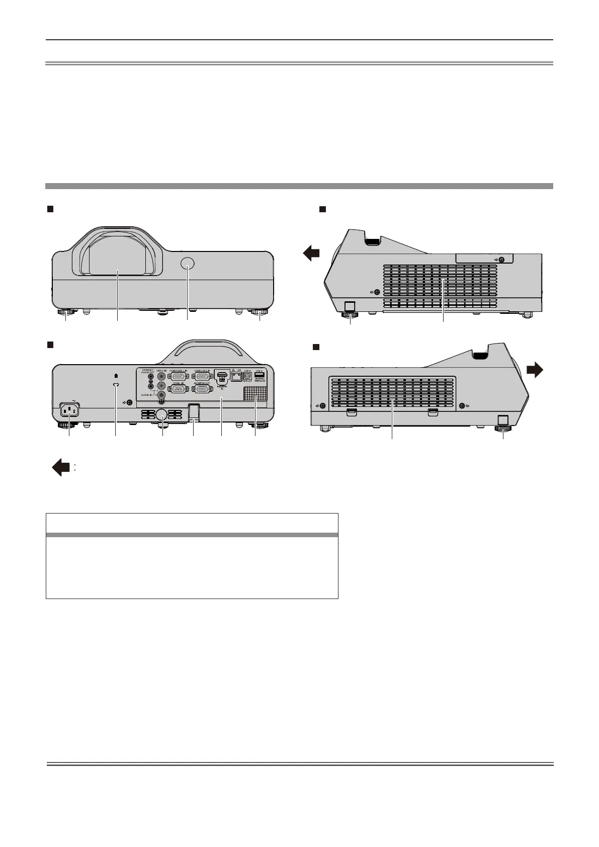 f Do not block the ventilation ports (intake and exhaust) of the projector.
