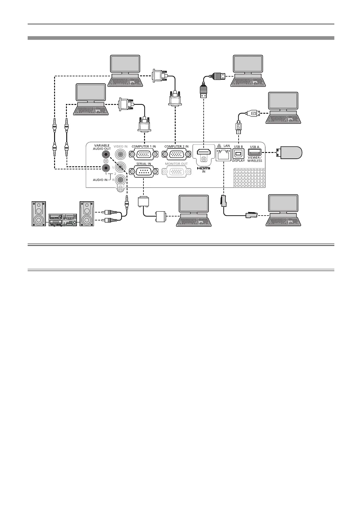 terminal by using a conversion cable, you need to set the [Setting] menu → [HDMI setup] → [Sound] to [Computer]
