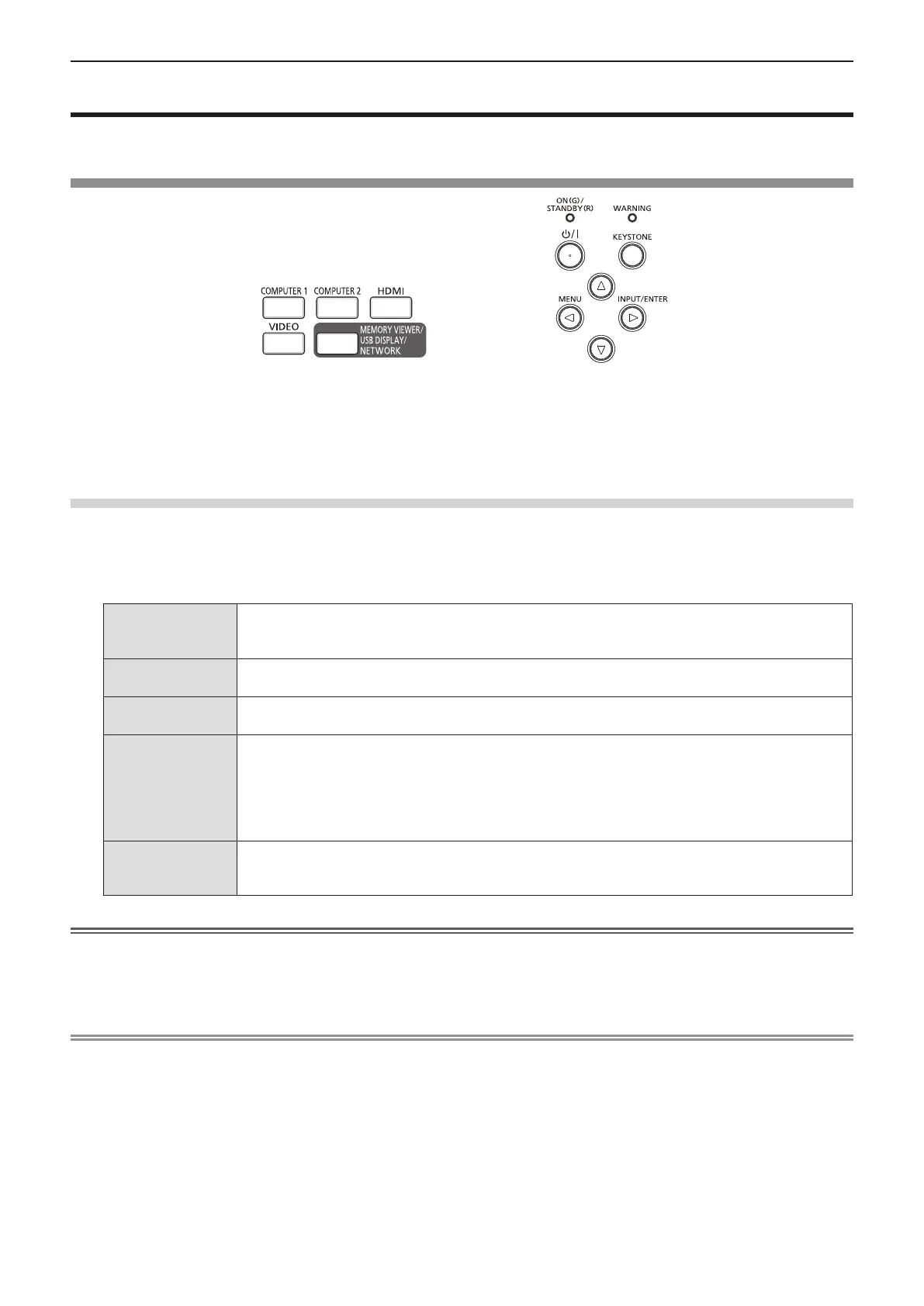 f If the Memory Viewer input is selected, the still image stored in the USB memory can be projected using the Memory Viewer