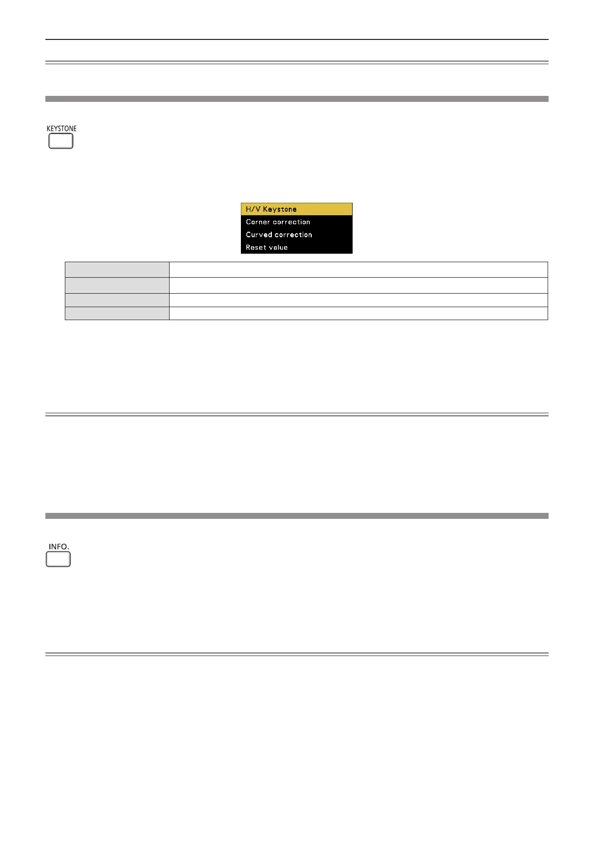 - [H/V Keystone] [Corner correction] (Upper left) [Corner correction] (Upper right) [Corner correction] (Lower right)