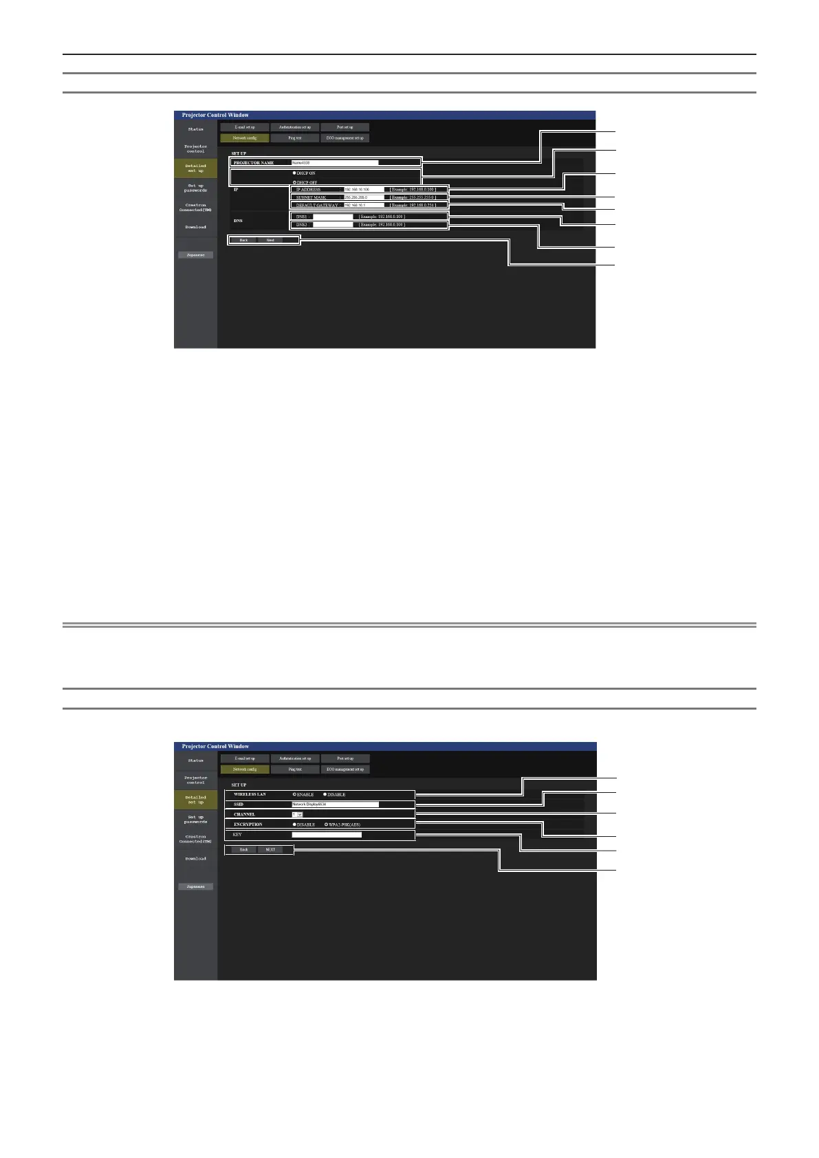 Enters the name of the projector. Enter the host name if it is