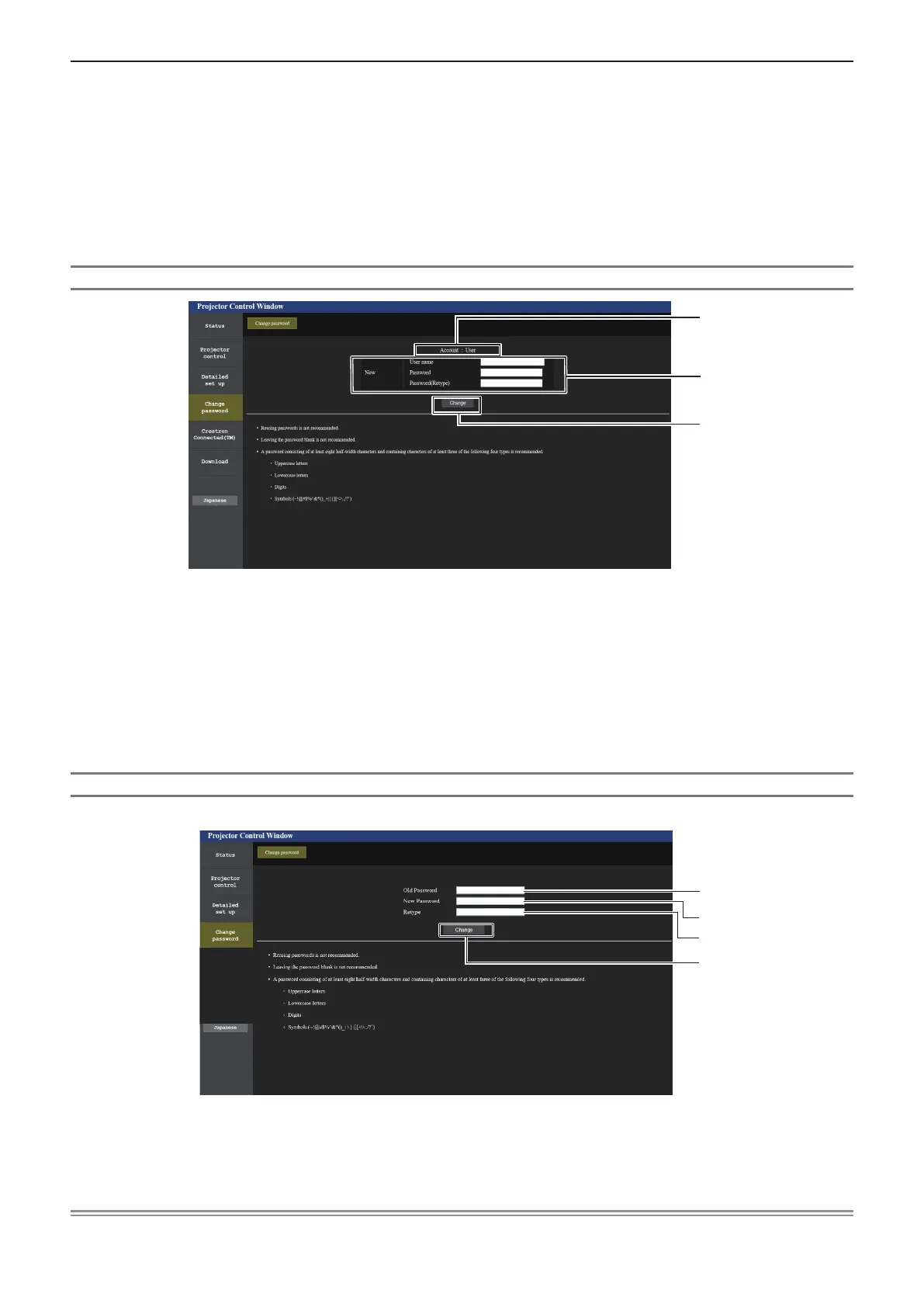 [Change password] (For user rights)