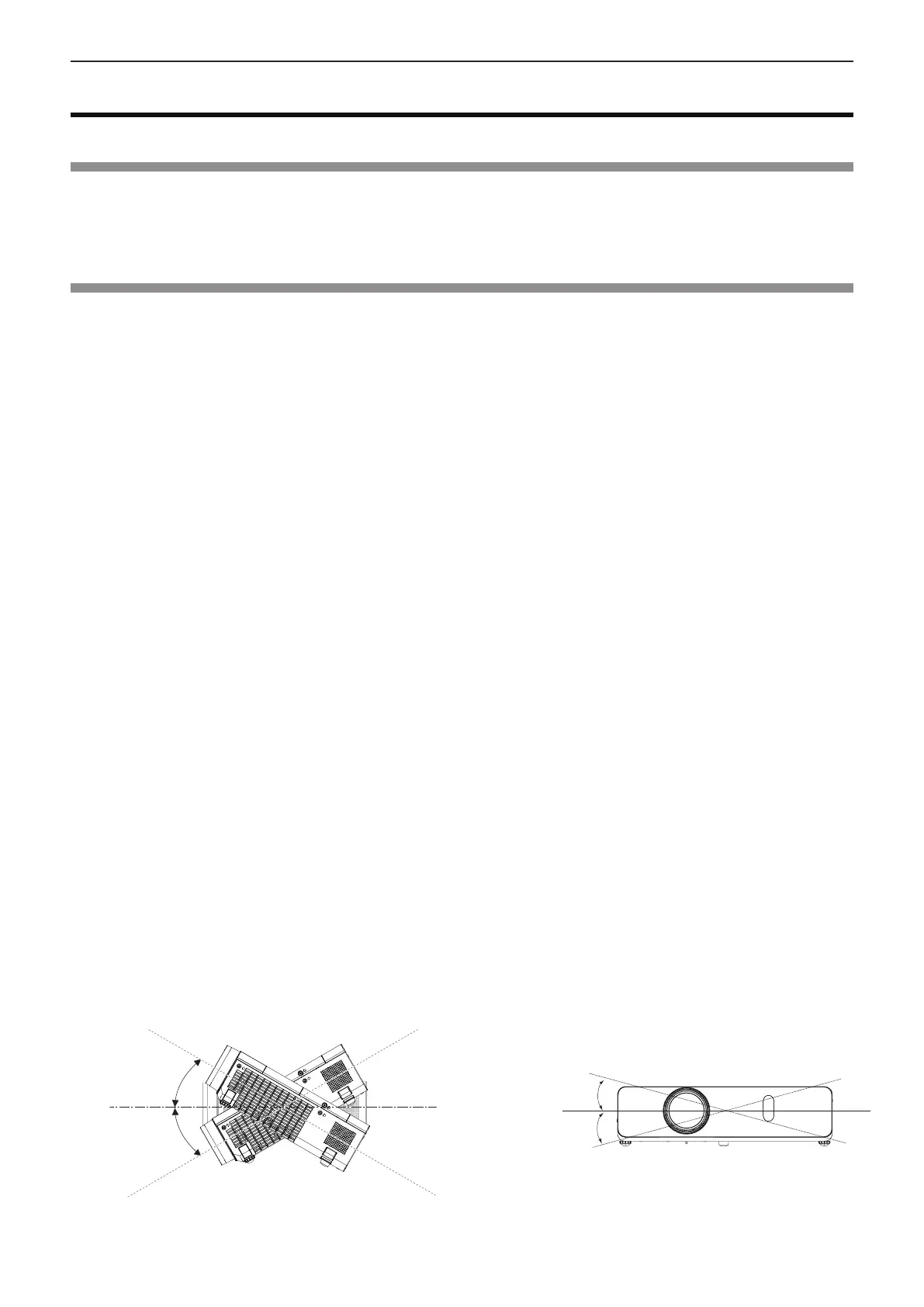Do not tilt the projector body more than approximately ±40 degrees vertically or ±15 degrees horizontally. Over