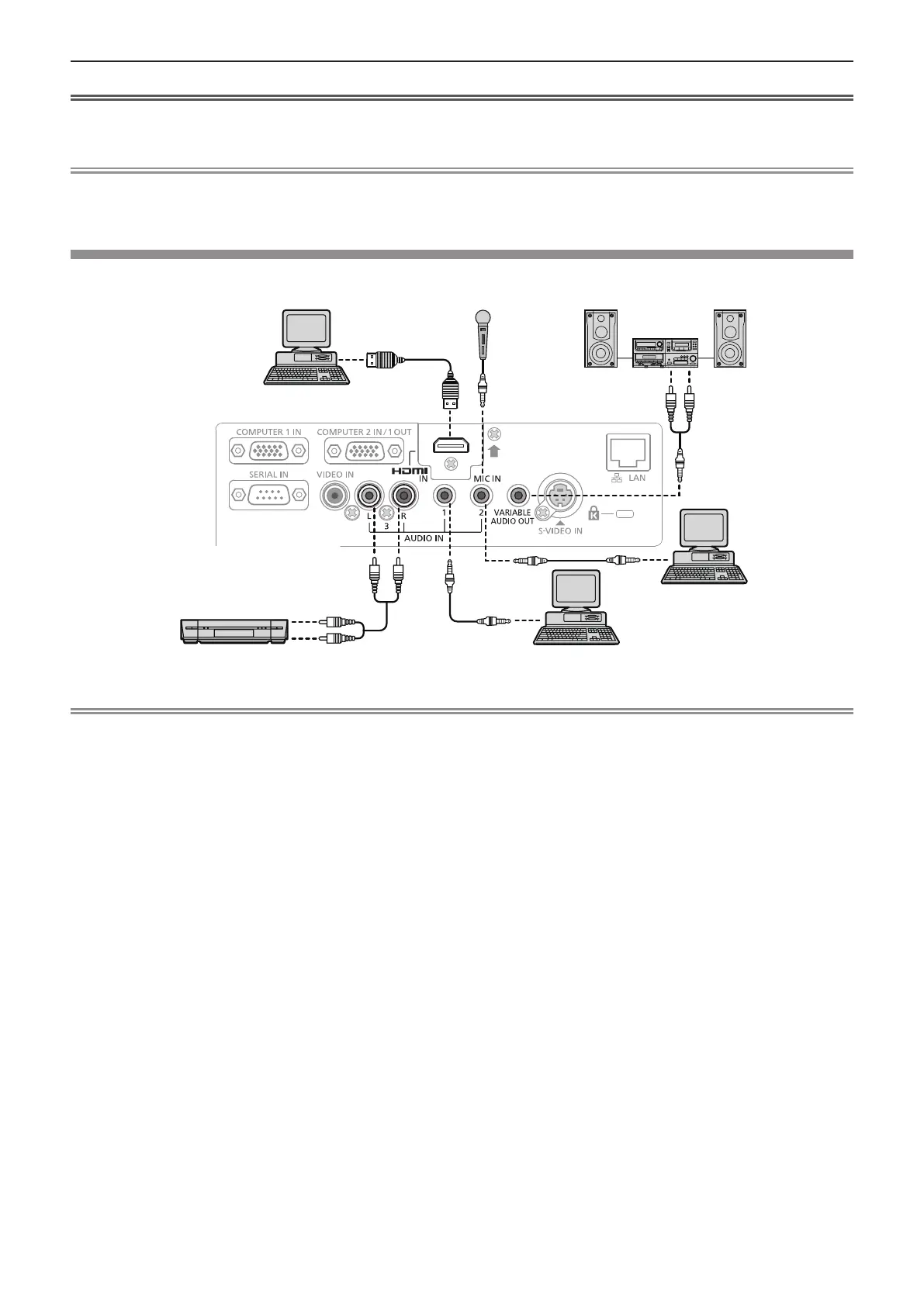 f When connecting the projector to a computer or an external device, use the power cord supplied with each device and