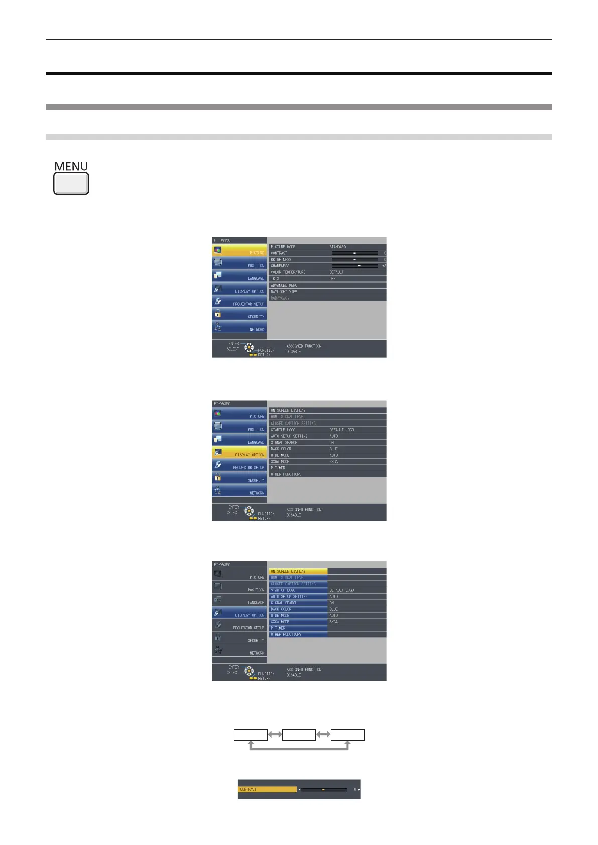 The on-screen menu (Menu) is used to perform various settings and adjustments of the projector.