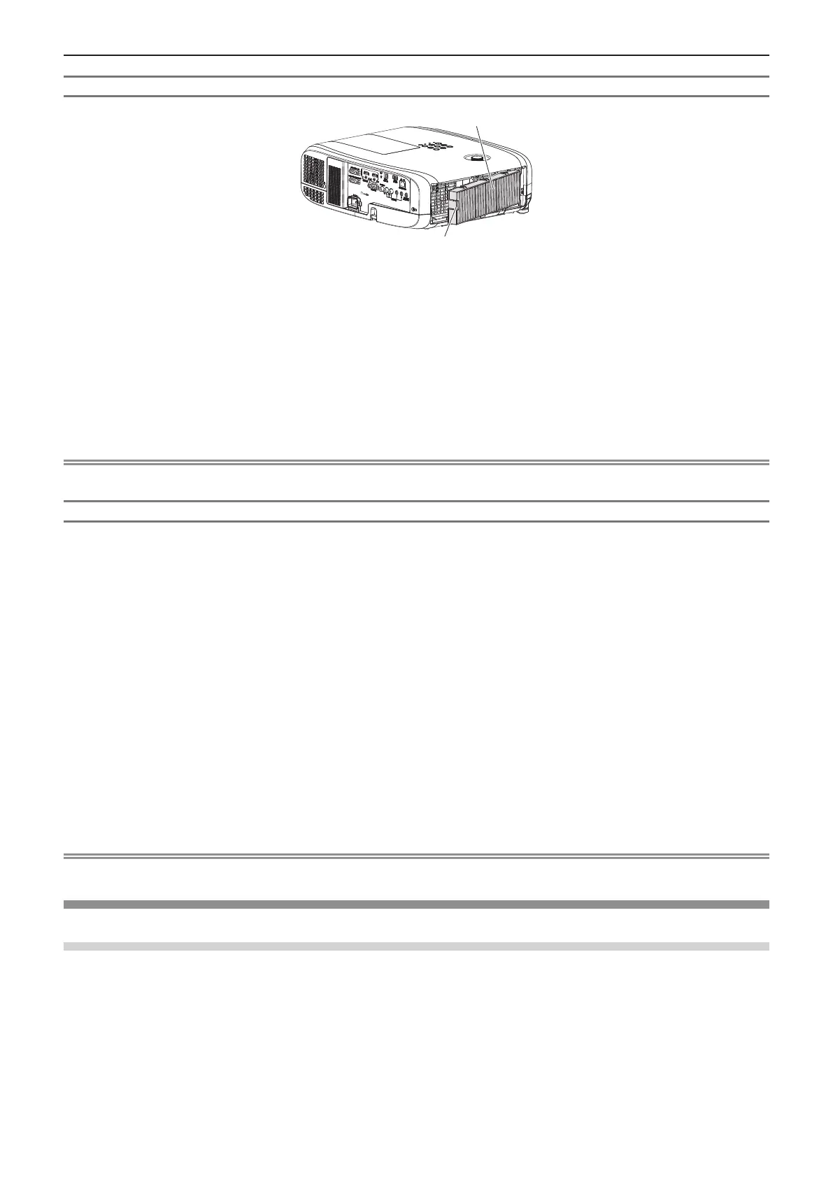 f When using the projector, be sure to attach the air lter unit. If it is not attached, the projector will suck in dirt and dust causing a malfunction.