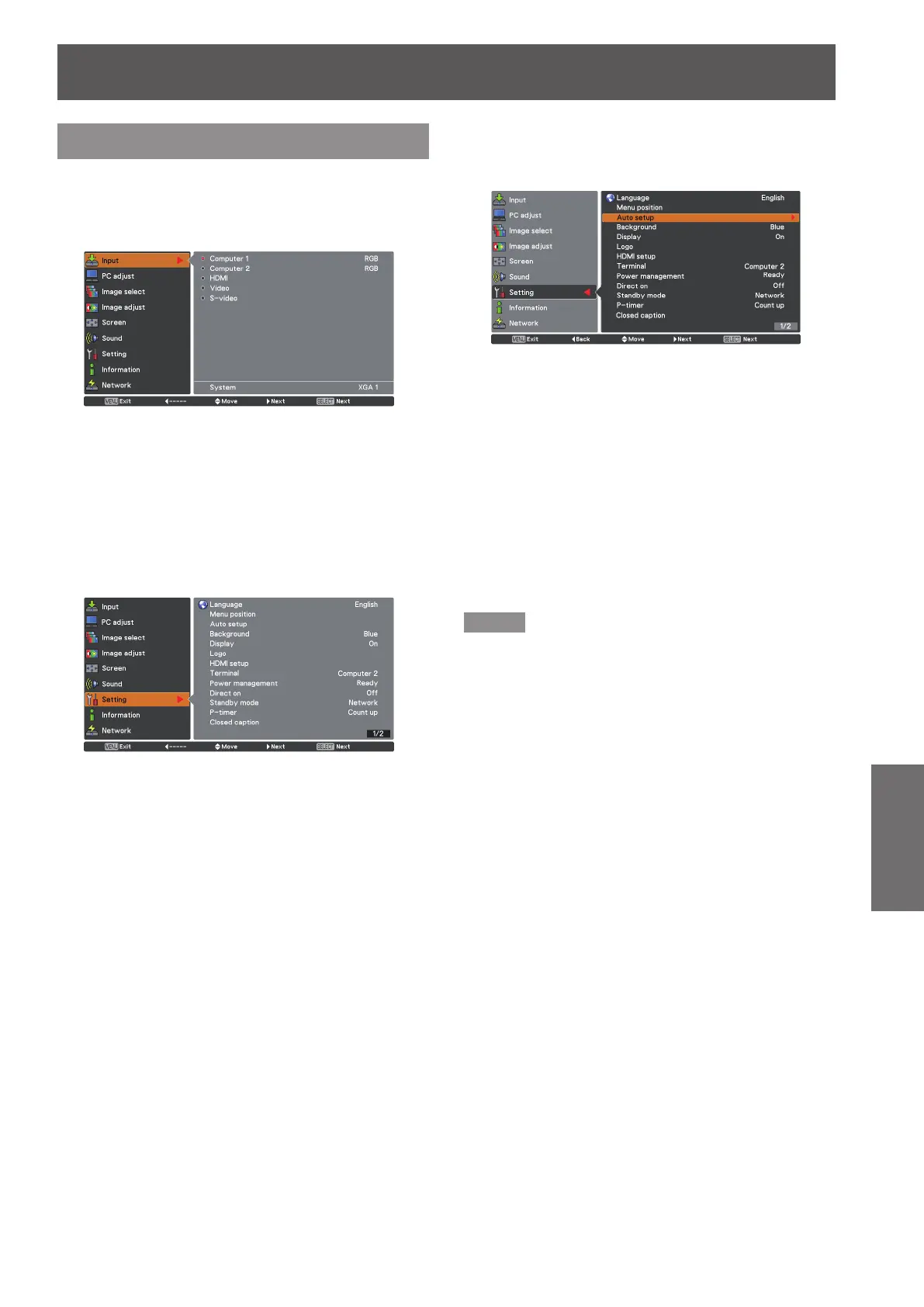 [Screen], [Sound], [Setting], [Information] and