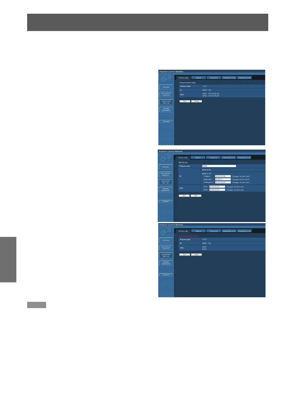 You can change network settings on projector when connecting with the administrator authority.
