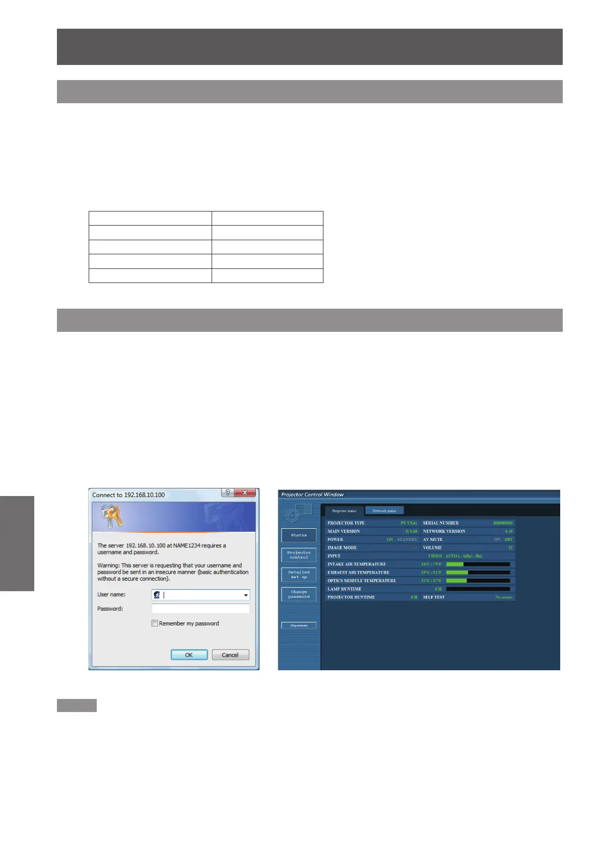 Enter the IP address set by the projector into the URL input eld of the Web browser.2 )