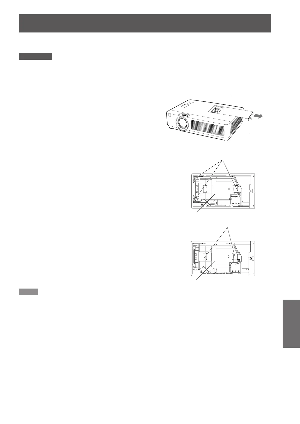 When you experience difculty in installing the lamp, remove it and try again. If you use force to install the