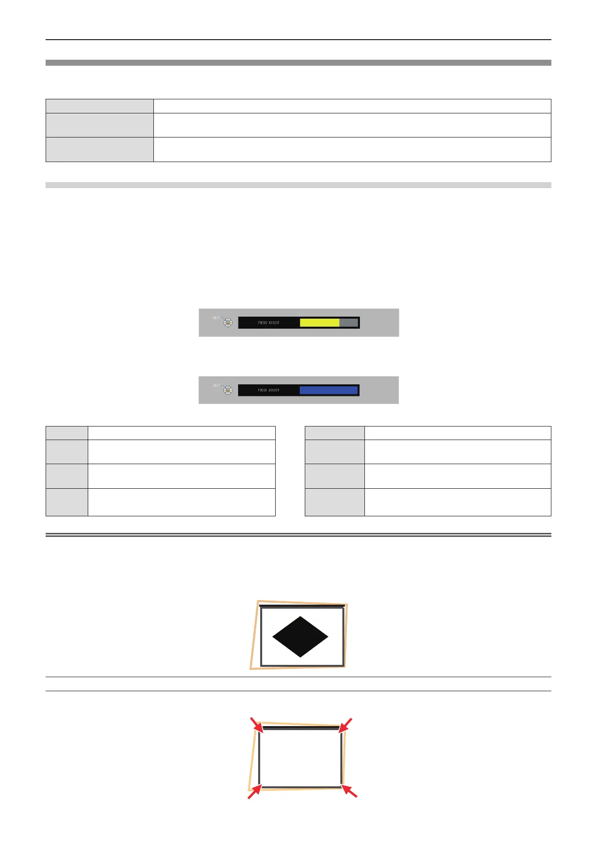 f A test pattern for [FOCUS ASSIST] appears on the screen and the focus assist bar appears in the center bottom of the