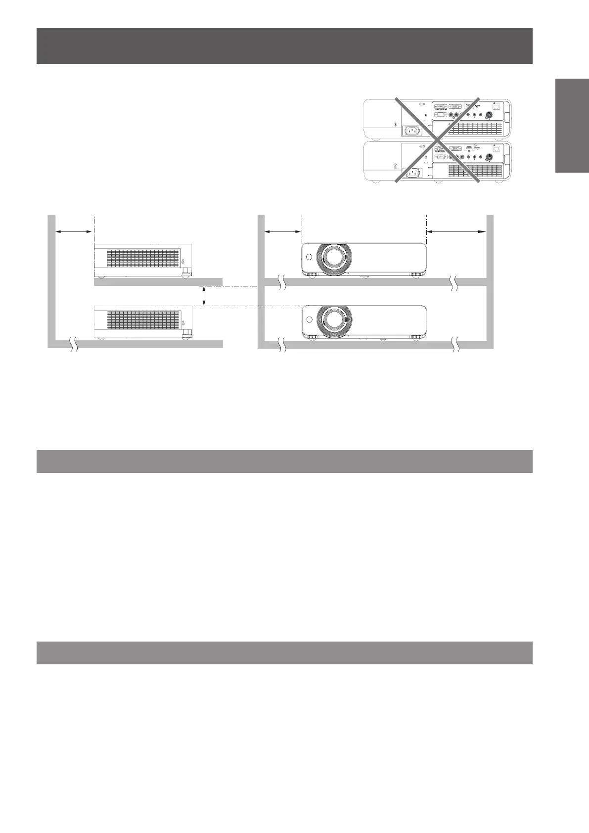 If you need to place the projector in an enclosed space, additional air conditioning and ventilation system