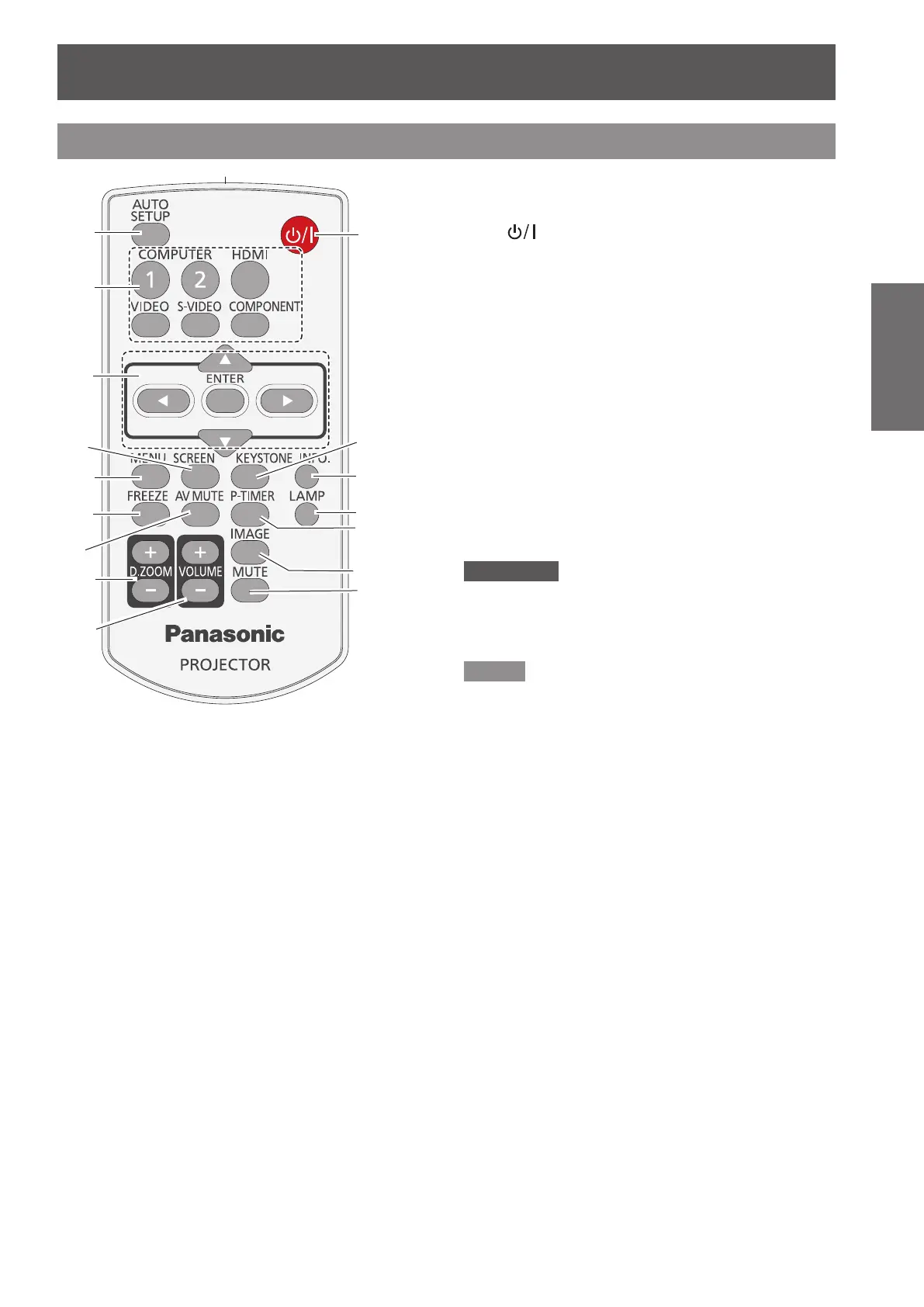 Turn the projector on or off. (