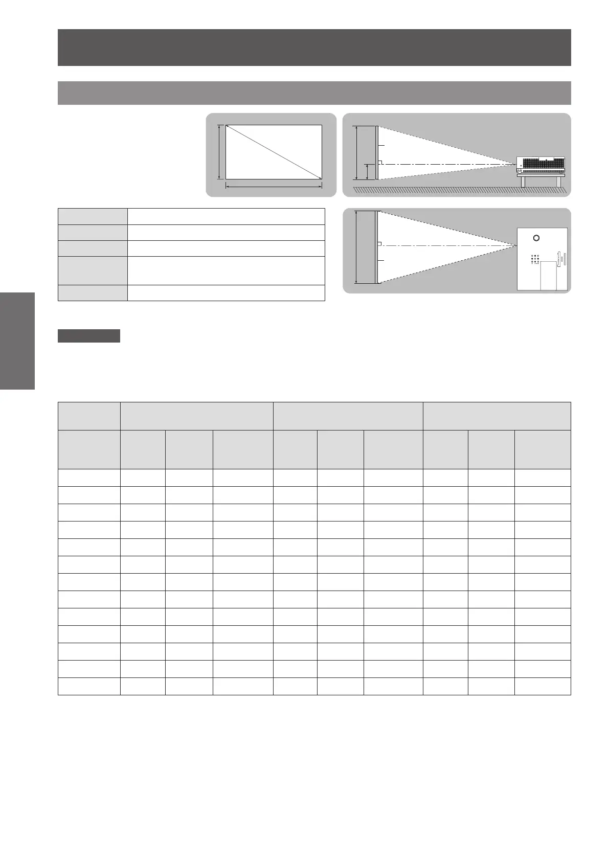 Any other projection distance can be obtained according to the screen dimensions (m) using the following