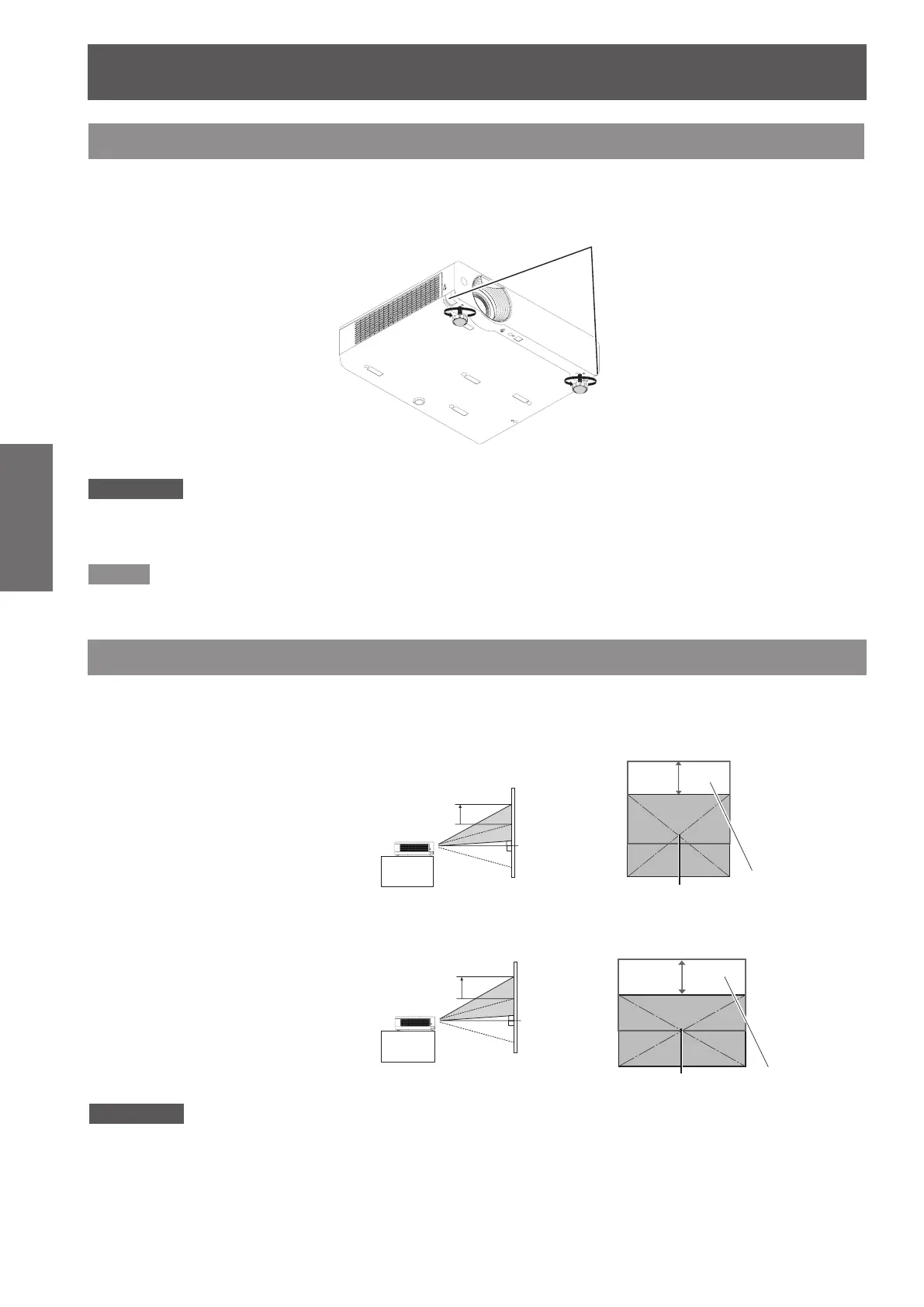 opposite direction. (Projection angle can be adjusted vertically.)