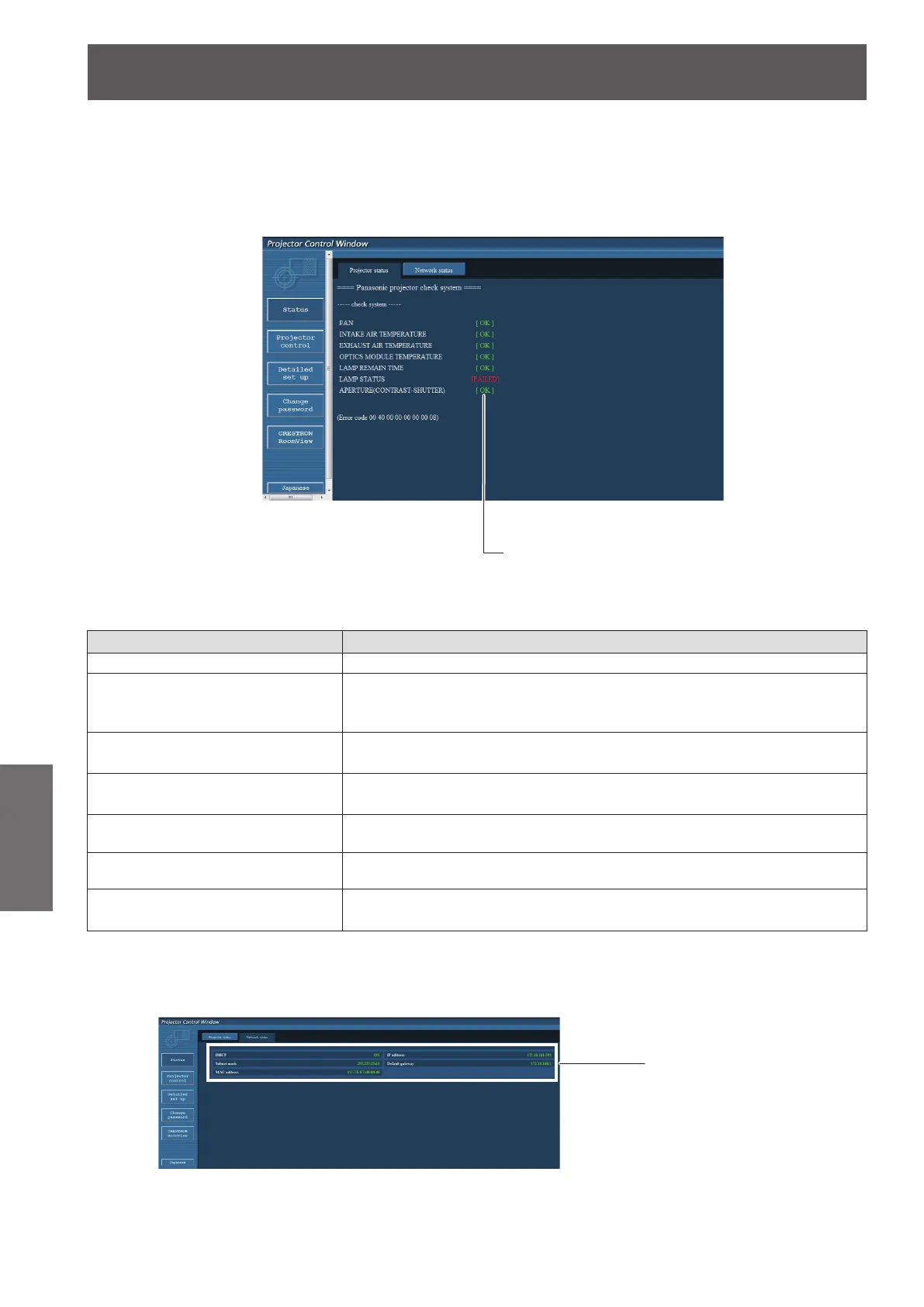 If [Error (Detail)] is displayed in the self-diagnosis information display column on the [Projector status] screen,