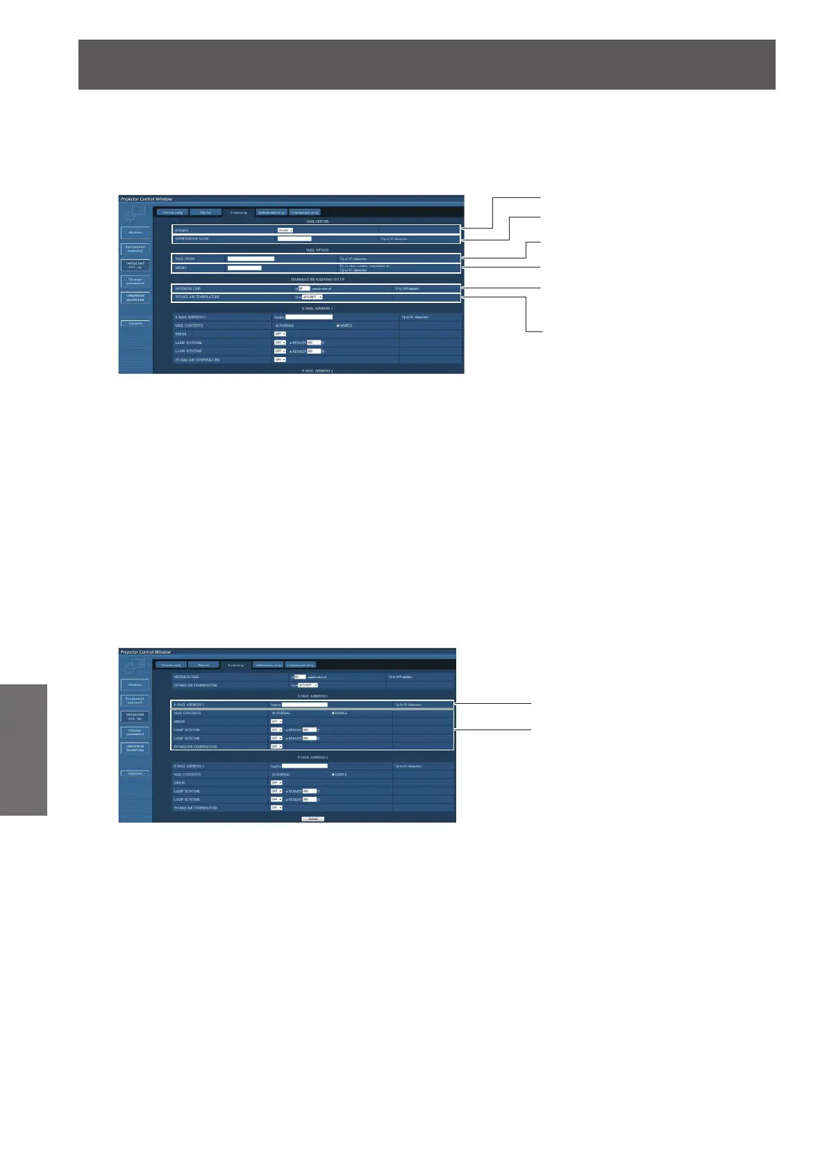 Enter the e-mail address of the projector.
