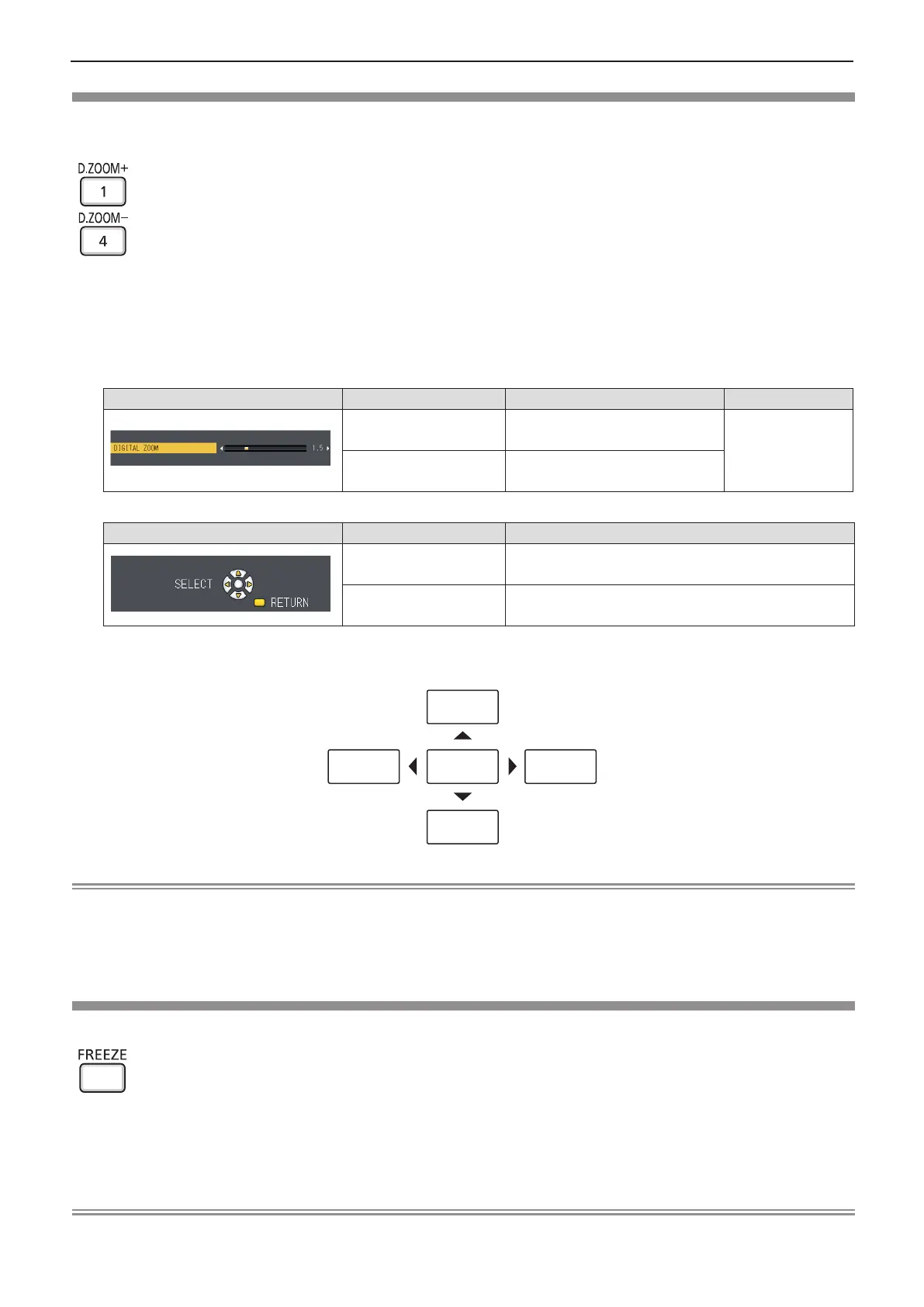 f The digital zoom function is canceled if the input signal changes during a digital zoom.