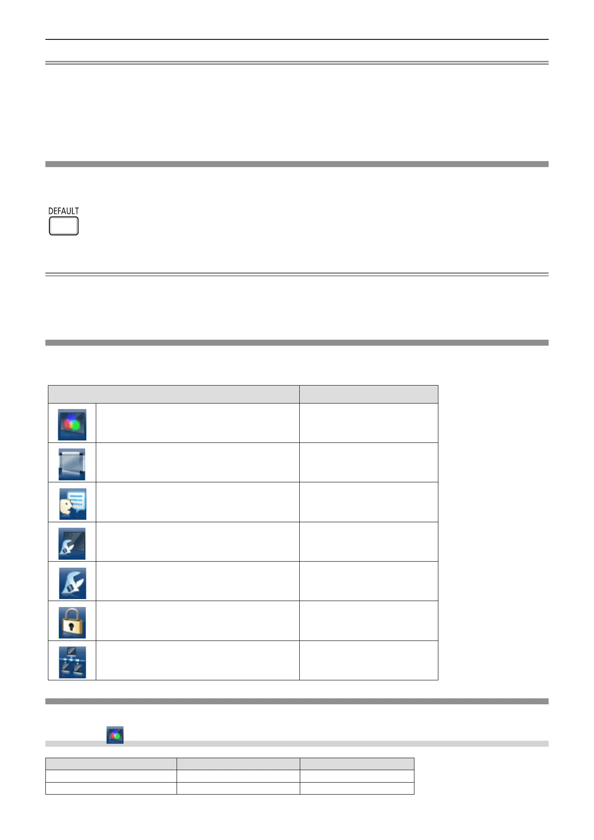 f Some items cannot be reset by pressing the <DEFAULT> button. Adjust each item manually.