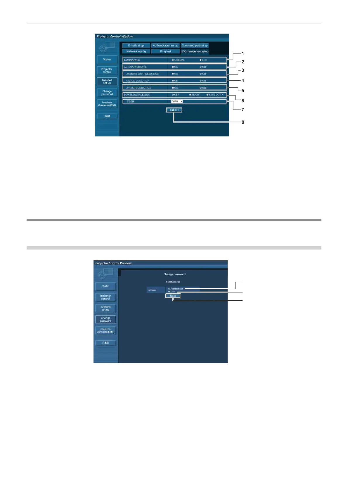 f For detailed description of each setting item, refer to the [PROJECTOR SETUP] menu of the projector → [ECO MANAGEMENT].
