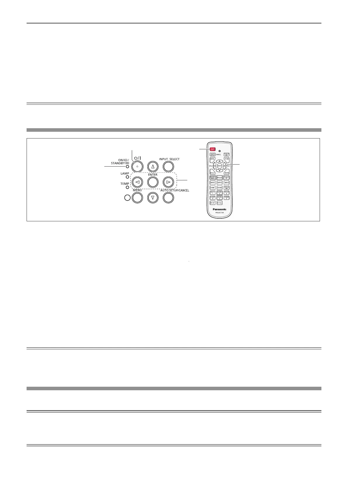 f The projector enters standby mode when the power indicator <ON(G)/STANDBY(R)> lights or blinks in red.