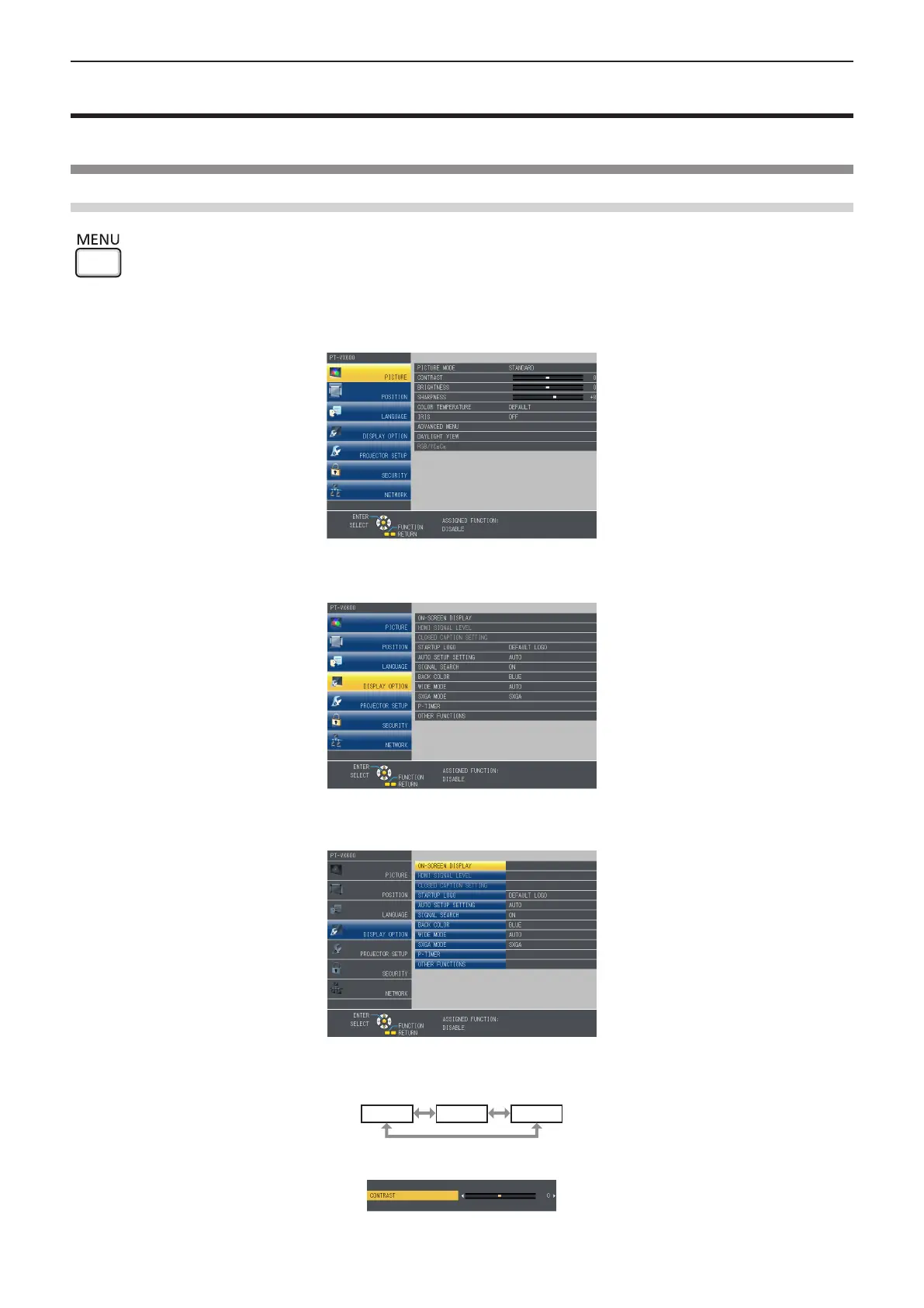 The on-screen menu (Menu) is used to perform various settings and adjustments of the projector.
