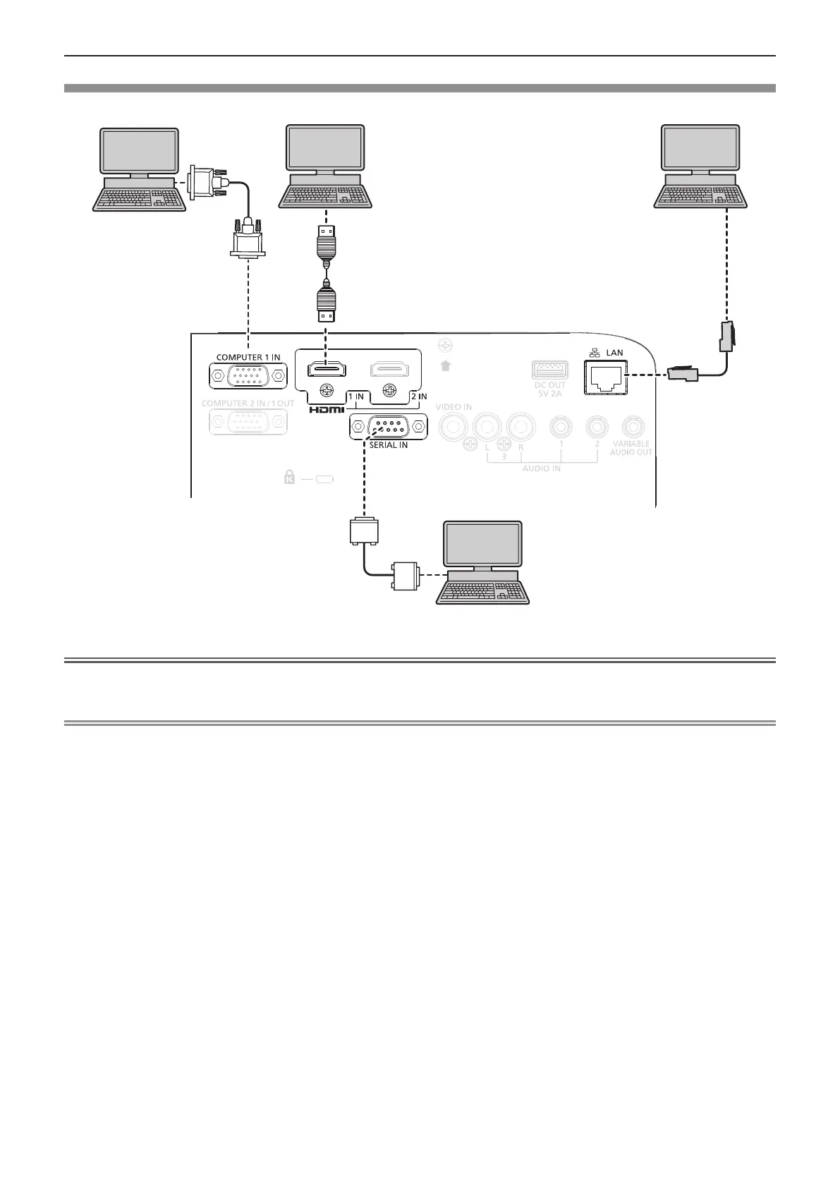f To output the signal input to the <COMPUTER 1 IN> terminal from the <COMPUTER 2 IN/1 OUT> terminal, set the [PROJECTOR SETUP]