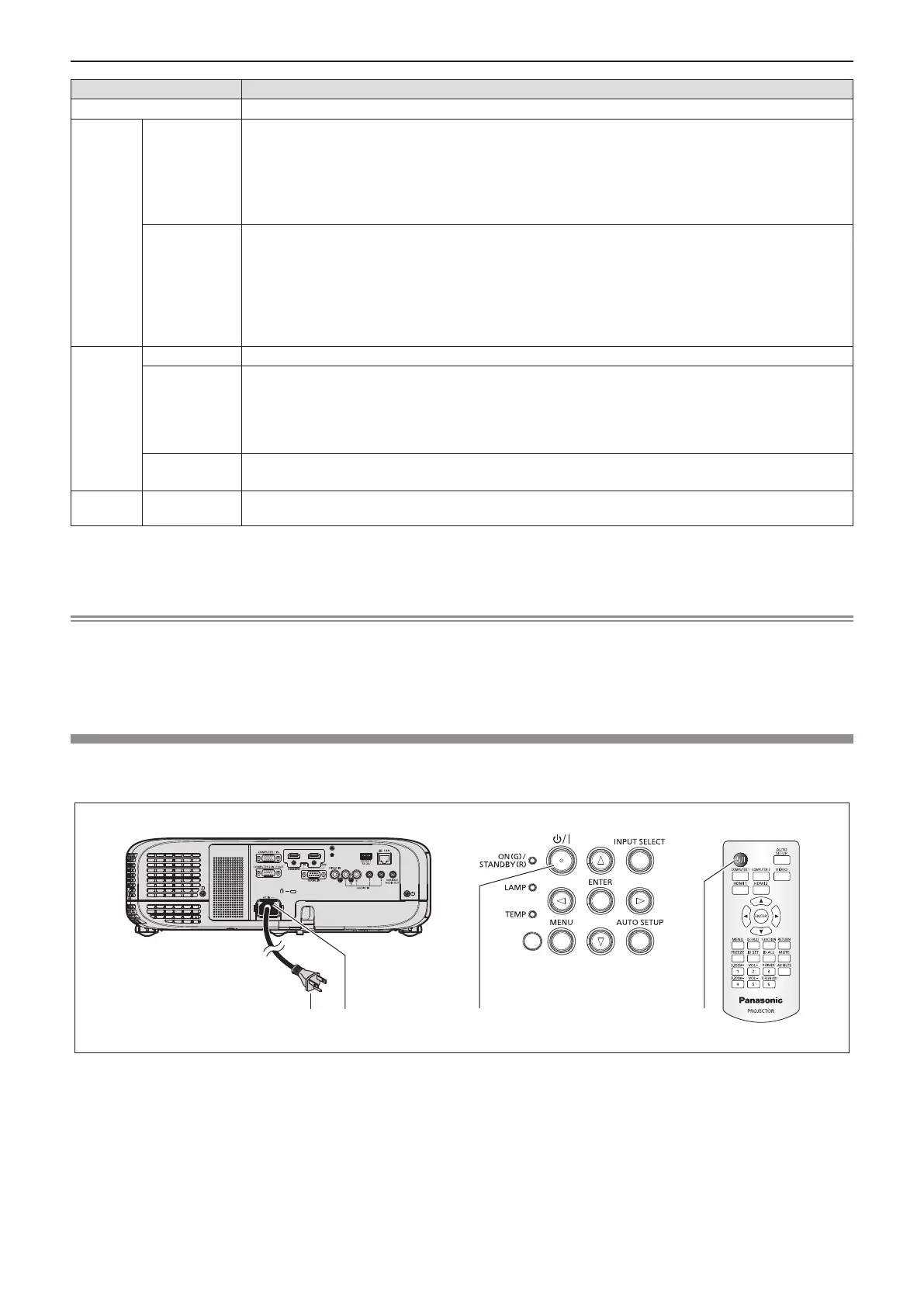 f The power indicator <ON(G)/STANDBY(R)> lights/blinks, and the projector will enter the standby mode.