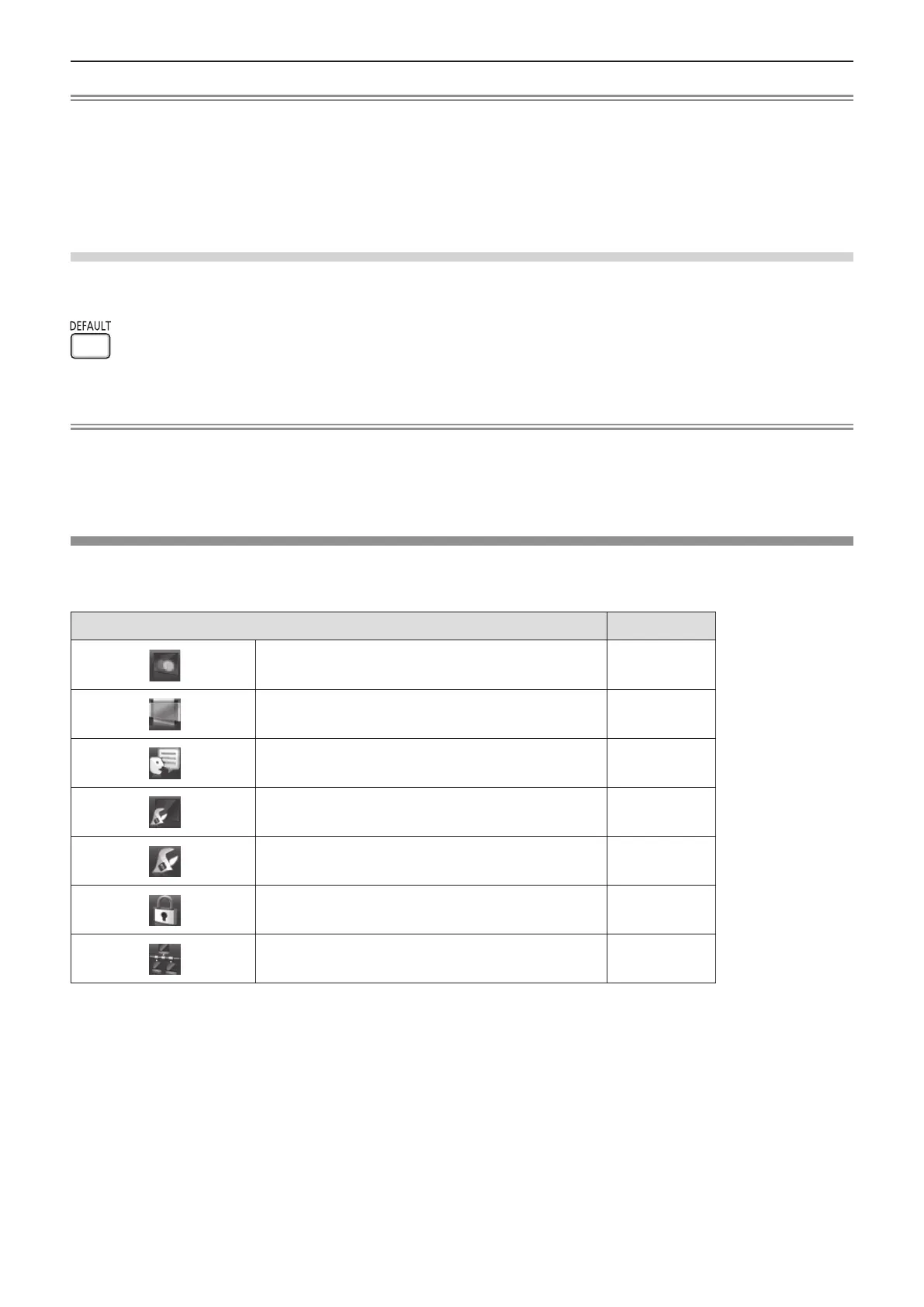 f Some items cannot be reset by pressing the <DEFAULT> button on the remote control. Adjust these items individually.
